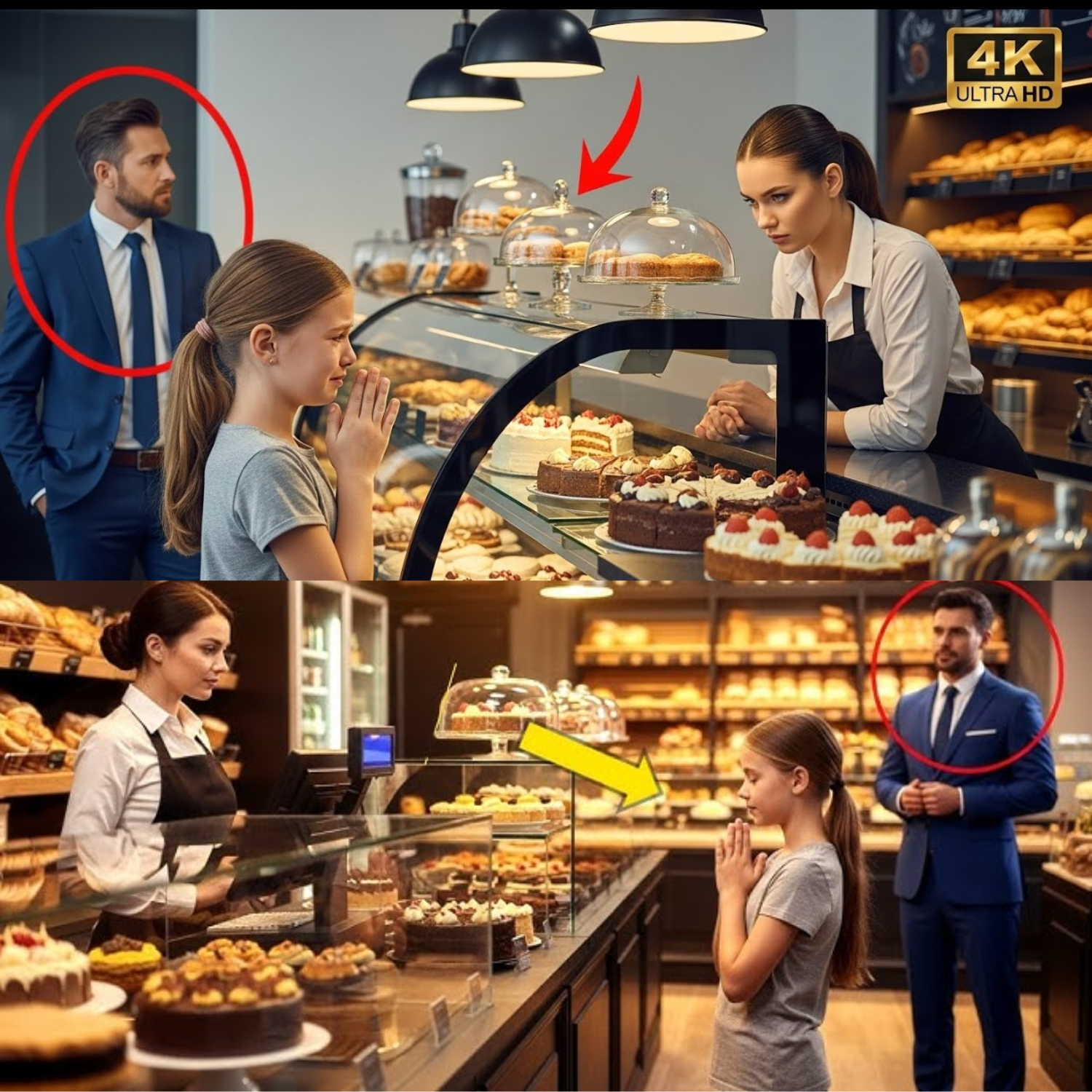 It was the kind of rain that didn’t just fall, but seemed to bleed from the sky, soaking the city in a relentless gray. New York’s avenues buzzed with umbrellas and hurried steps, every face pointed down, every heart locked behind glass and steel. No one noticed the little girl on the sidewalk, shivering beneath the glowing window of a bakery, her tiny hands wrapped around an empty paper cup. She was eight, maybe younger, her hoodie torn and two sizes too big. Her eyes, gray and haunted, watched the world pass her by. She whispered to the glass, her voice barely audible, “Do you have any expired cake?” The words hung in the air, ignored by dozens of strangers who rushed past, too busy to see her, too numb to care.