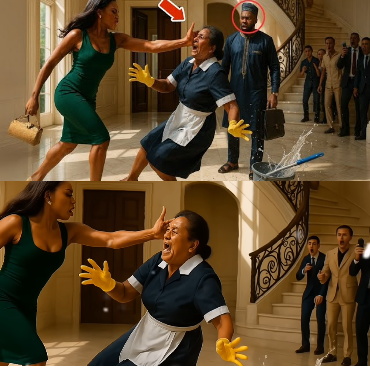The tension became unbearable. Vanessa’s rage crystallized. She needed this servant to acknowledge her authority, to validate her position. The woman’s serene indifference became the final straw. Without thinking, Vanessa’s hand flew through the air, slapping the old woman across the face with all the force of her frustration. The slap echoed through the marble foyer like a gunshot, sharp and irreversible. Satisfaction didn’t come. Instead, realization crashed over Vanessa—she had crossed a line she couldn’t uncross.