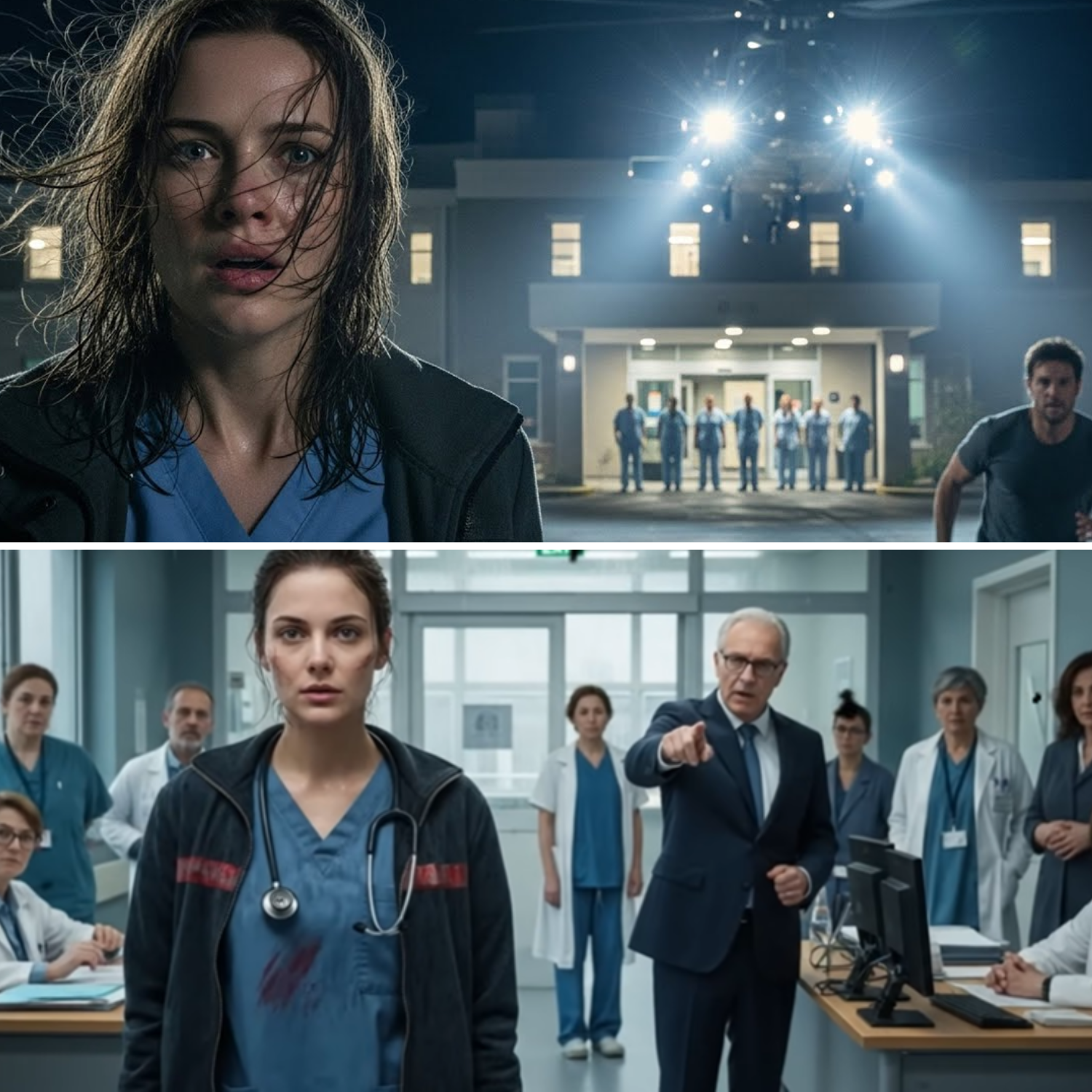 That night, as Avery stepped out of the hospital doors, the harsh white glare of the Black Hawk’s spotlight hit her directly. Dust, water, and debris flew everywhere, pedestrians screamed, and cars screeched to a halt.