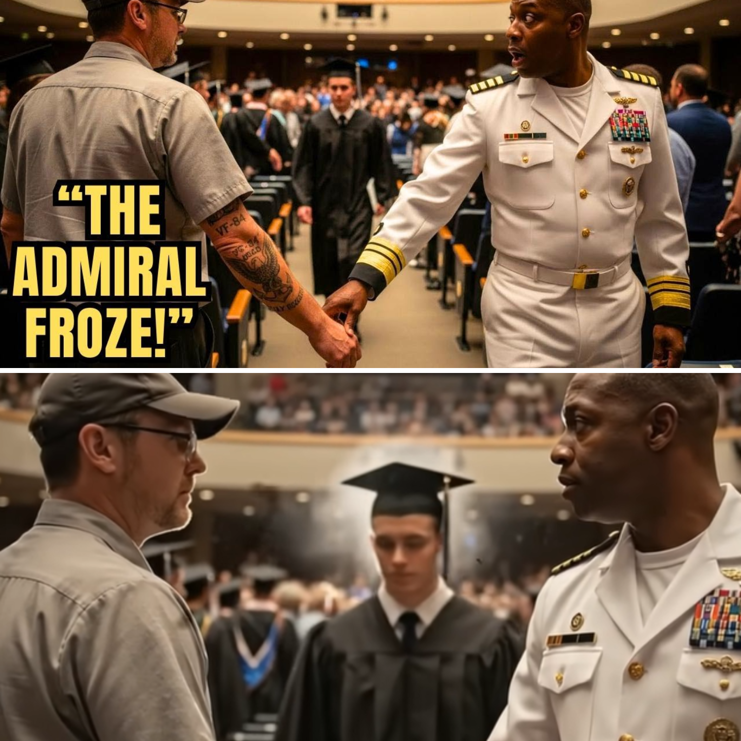 The admiral’s voice grew louder, commanding the room. “This man has spent the last twenty years working night shifts as a janitor, putting every penny toward his son’s education. I checked—three jobs, no days off. All so his son could stand here today and graduate from this academy. While we’ve been celebrating heroes behind podiums, a real hero has been emptying our trash cans.”