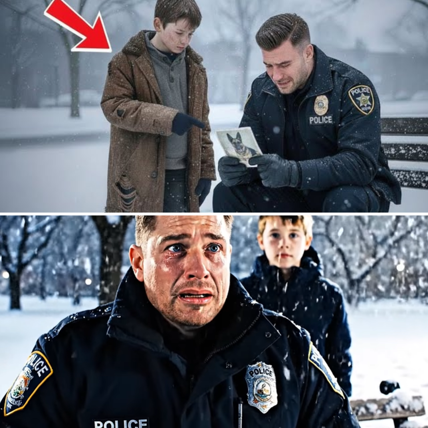 Kota became a symbol in the department—officers visited, children took photos, and the story spread. The boy, once invisible, found a home. Mark found peace. The city, for a brief moment, remembered the power of hope. And somewhere in the snow, beneath the weight of memory and regret, an officer, a dog, and a boy reminded the world that sometimes, the greatest rescues come from the most unexpected places.