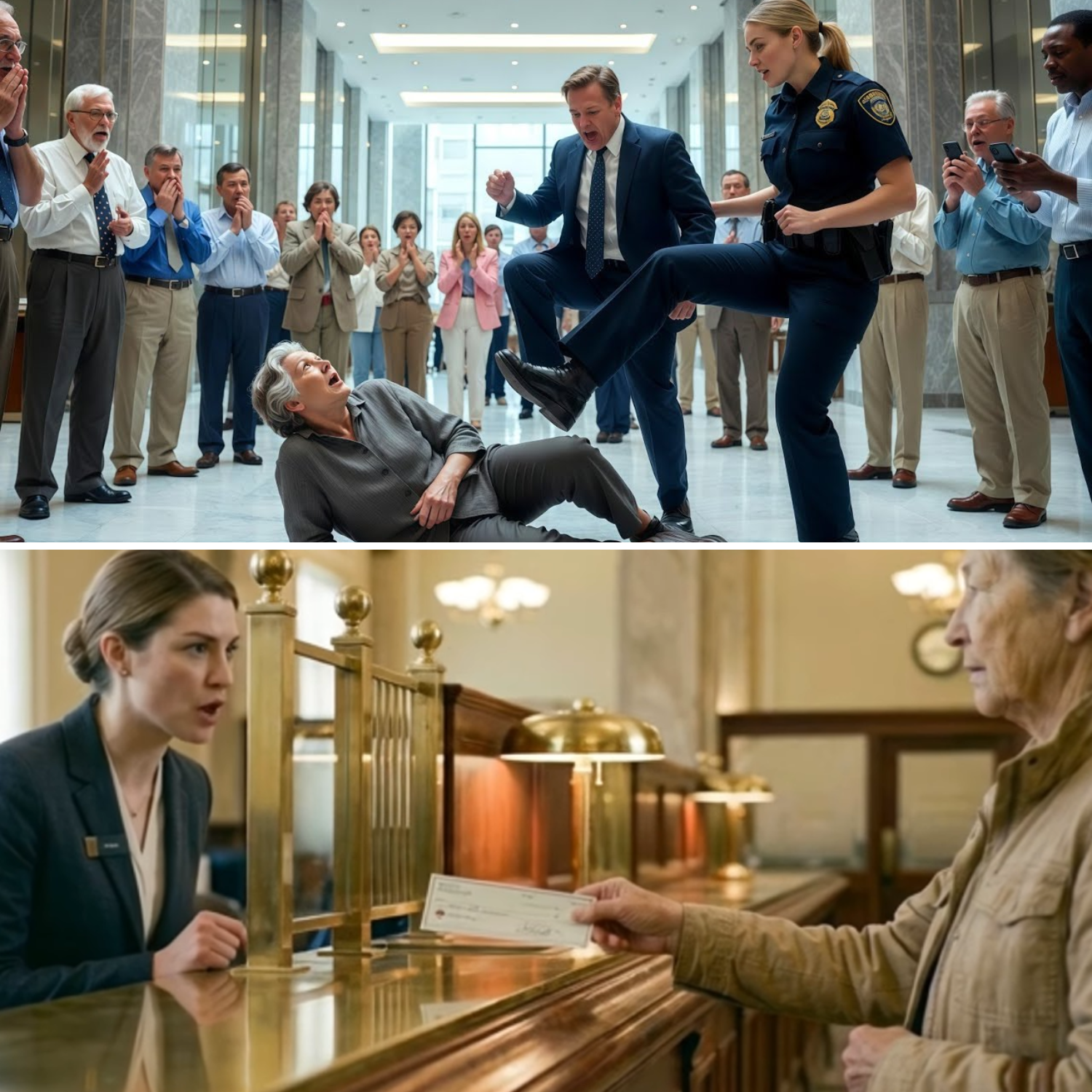The commotion drew the bank manager, Mr. Thompson, who barely paused before slapping Martha across the face. In the stunned silence, Martha collapsed to the ground. “Throw this beggar out,” the manager barked. Jessica dragged Martha to the lobby and shoved her outside. Staff and customers watched in silence, some ashamed, most simply indifferent. No one realized the woman they’d just humiliated was the mother of the state’s police chief—and every moment was captured on security cameras.