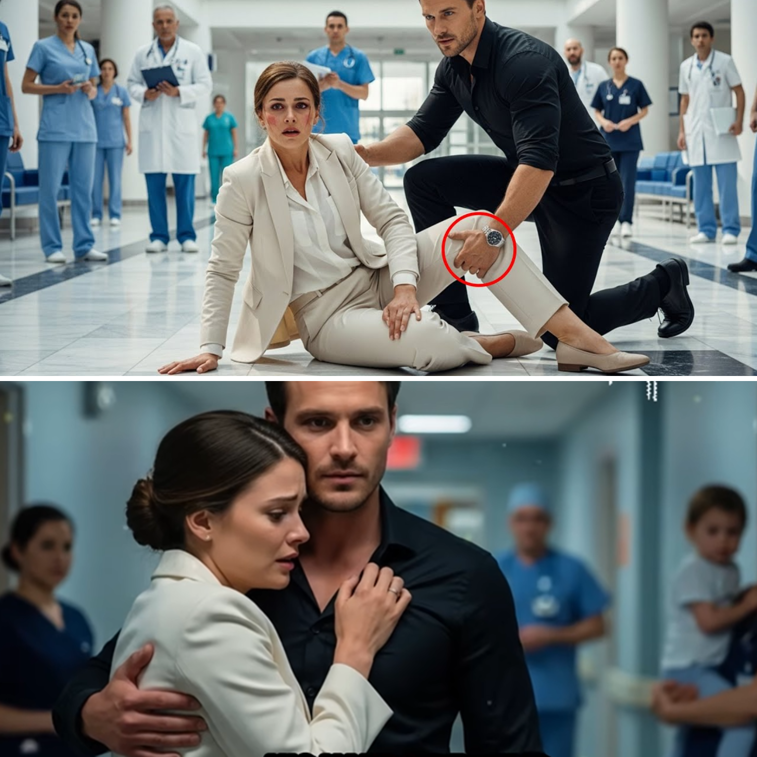 The lobby of New York Memorial Hospital was normally a haven of sterile calm, but on this particular morning, it became the crucible for a spectacle no one would forget. The air was sliced by a sudden, sharp commotion near the revolving glass doors. There, on the cold marble, sat Elena Moretti—her ivory power suit rumpled, her designer heels abandoned, her legs shuddering uncontrollably. She was the youngest, most relentless CEO in the biomedical industry, a woman whose name made boardrooms quake and whose reputation for emotional detachment was legend. Now, she was trembling, her voice barely audible: “I… I can’t walk.” Not a soul dared approach. Her presence was as lethal as it was magnetic; her downfall, even momentary, was a live grenade in the hands of a crowd that only knew her as untouchable.