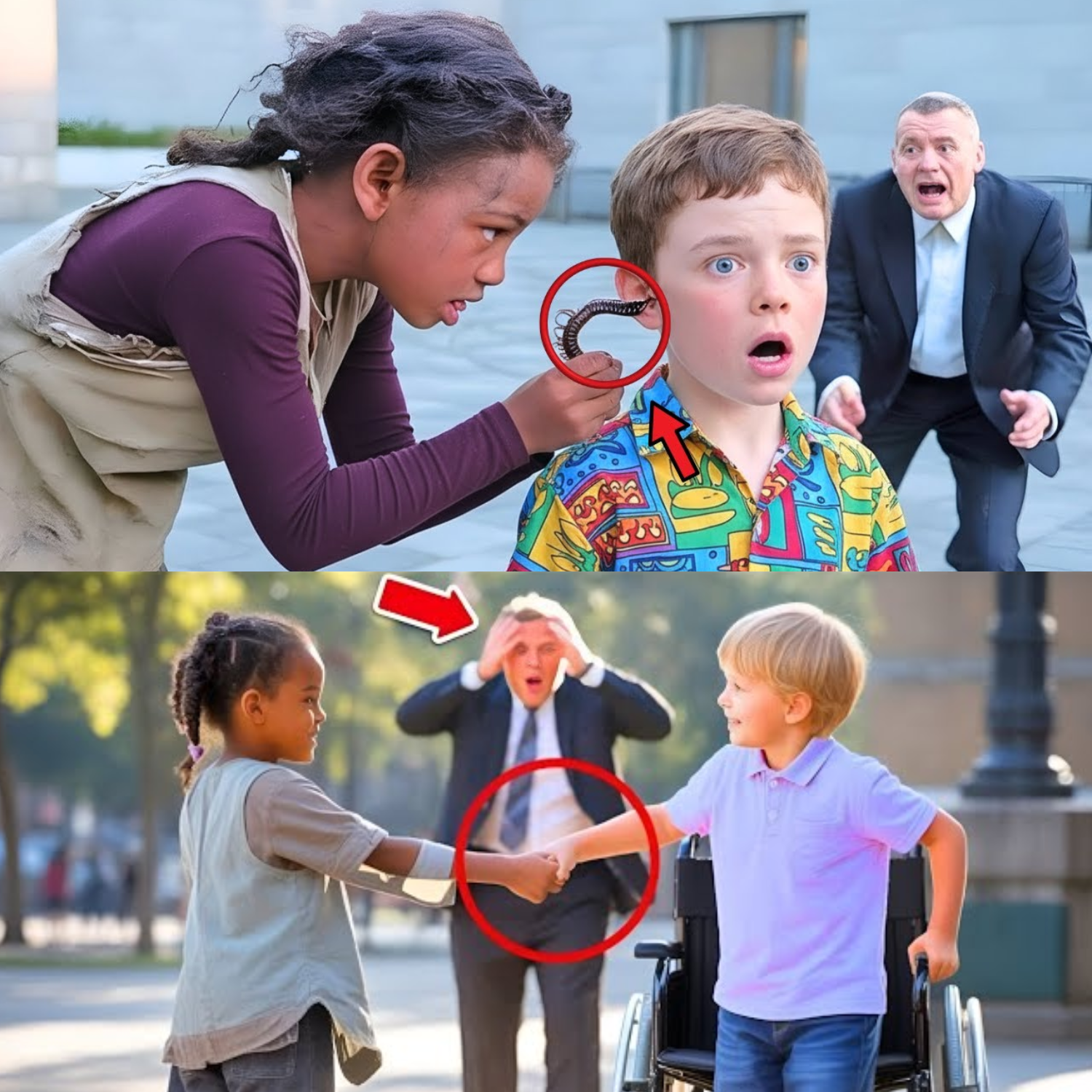 Lucas froze. The sound of his son’s voice hit him harder than any blow could. For ten years, he had prayed for that moment. He had spent millions chasing silence, hiring experts, building machines. And yet, a barefoot girl from the street had undone it all in mere seconds.