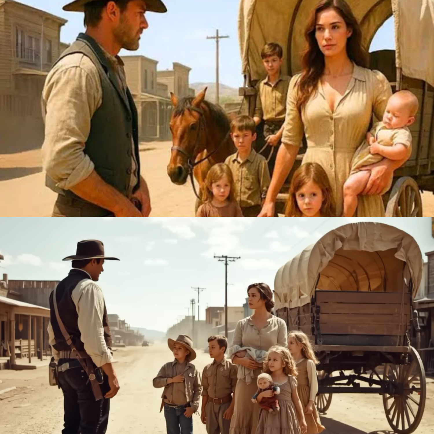 Caleb’s chest tightened. He had asked for a wife, not a ready-made family. Five mouths to feed, five souls depending on him. He was a rancher, not a father. And yet, when Hannah lifted her chin, bracing herself for rejection, something inside him shifted. She was terrified but unbroken, determined to fight for her children even in the face of his silence. Caleb cleared his throat. “Best get you all out of the sun. Long ride from St. Louis. My wagon’s this way.” Relief flickered in her eyes, though she tried to hide it. She gathered her children, and together they followed him.