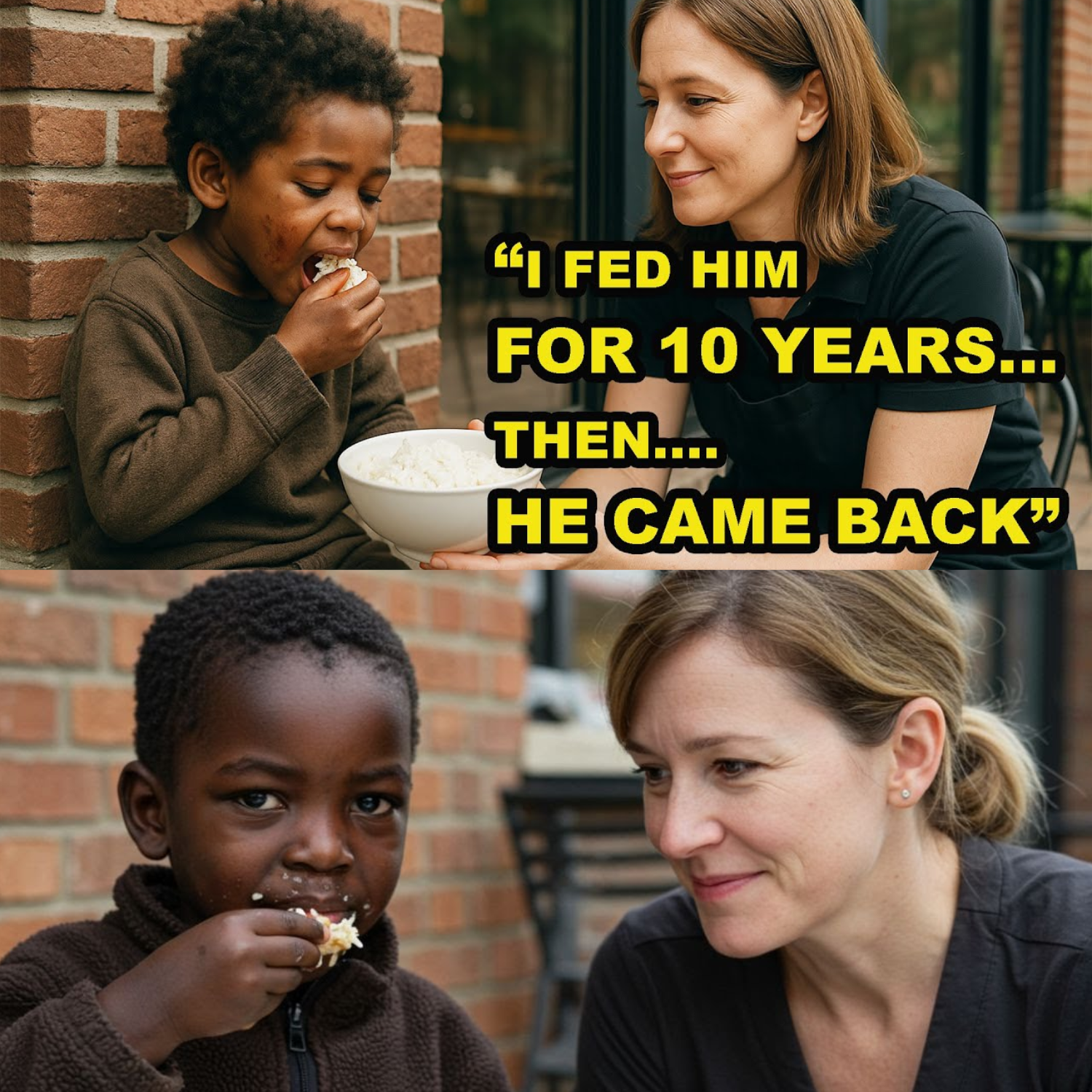 Evan grew up with those notes. Each line, each fold of the brown paper bag was etched into his memory like a name carved into a headstone. He never lingered—he’d eat and quietly disappear. But the note, he always folded it neatly and slid it into his coat pocket like something sacred. Helen never asked for anything in return. Sometimes the restaurant manager scolded her. She’d bow her head, apologize quietly, and do the same thing again the next day. What kind of person lets a hungry child go without? She’d think to herself. And ten years passed that way. The world changed, time moved on, but Helen remained the same, with a paper bag, a gentle note, and a child whose name she never asked.