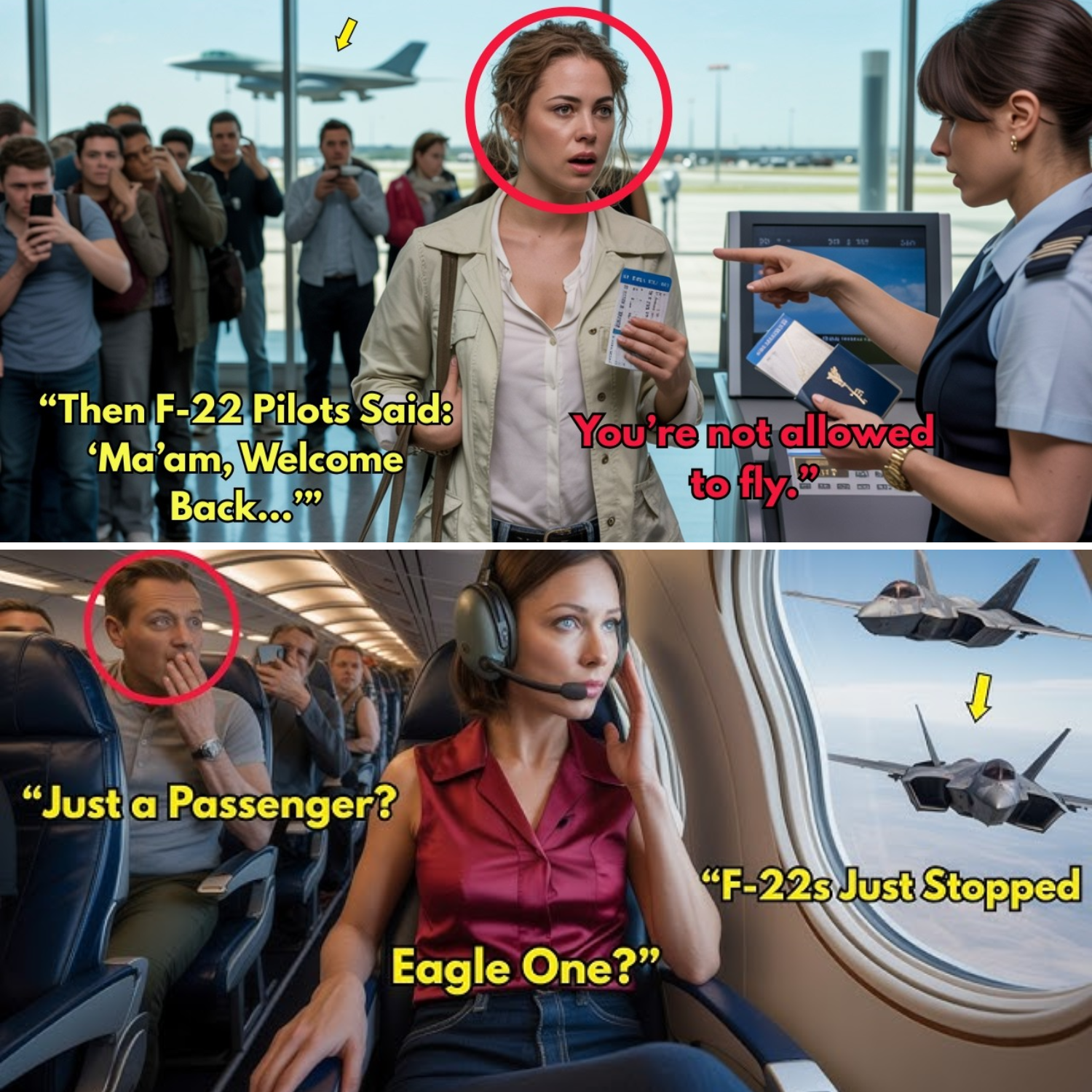 One passenger after another described the terror of hearing the captain announce a medical emergency, the confusion when a banned passenger went to the cockpit, and then the shock of hearing F-22 pilots speak her name with such profound respect that everything suddenly made sense. When that fighter pilot said, “Fix Mitchell is cleared for immediate cockpit access with full authority,” the way he said it with such reverence and certainty made everyone understand that something huge was happening.