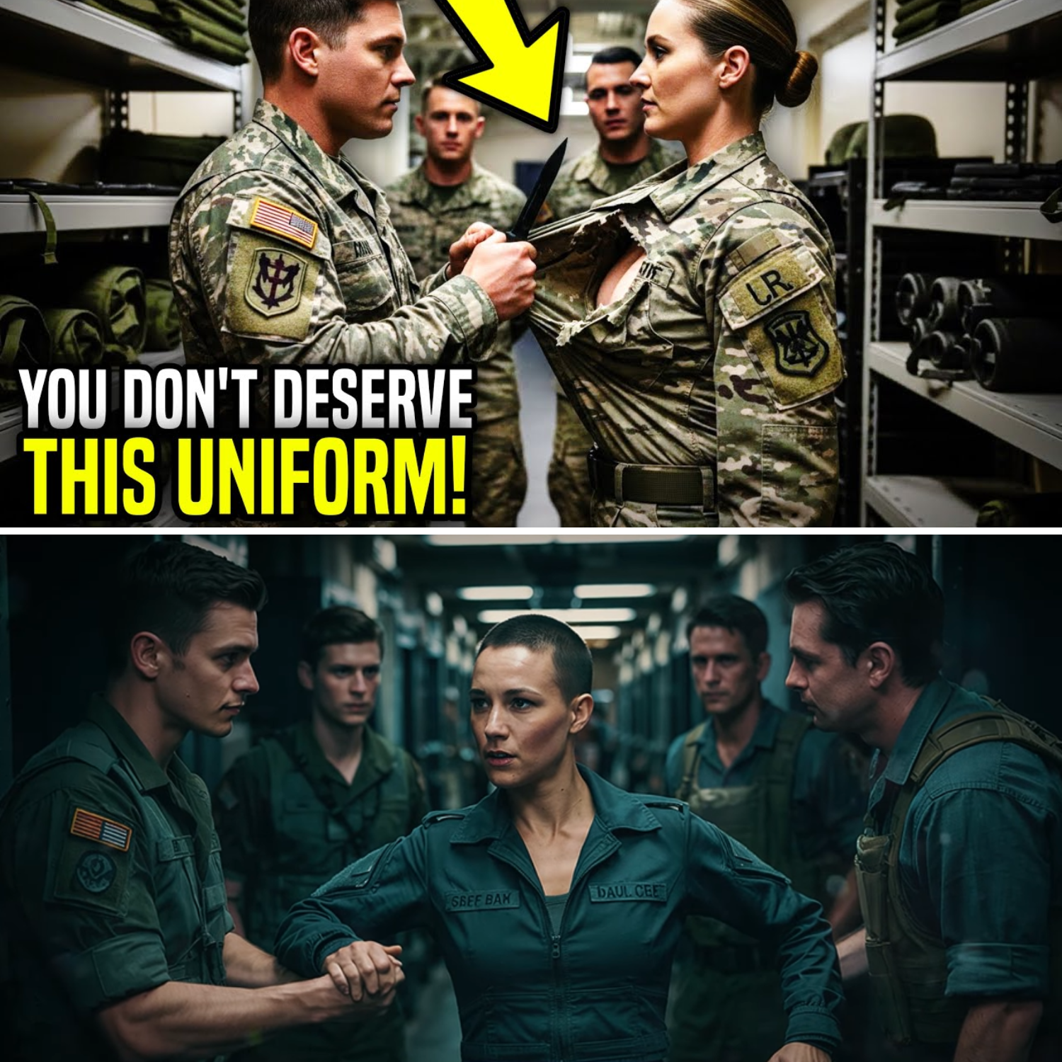 They didn’t strike her. They didn’t throw her down. They didn’t have to. Three men, one corridor, no witnesses. Their weapon wasn’t violence, but humiliation—a training knife pressed slow and deliberate against her uniform shirt, slicing open fabric not to wound, but to degrade. They called it “correction.” They called it “form adjustment.” But what it was, in every fiber of the moment, was sexual harassment in uniform.