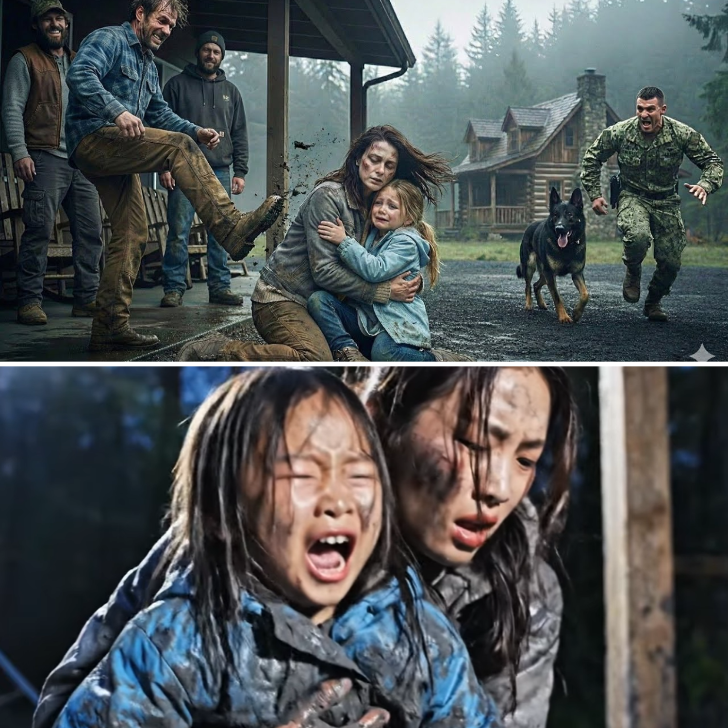 The first blow landed so hard that the sound echoed across the quiet clearing—a dull, sickening crack that made the little girl scream before she even understood what she had seen. In that instant, her mother was no longer standing, no longer shielding her with quiet strength, but collapsing to her knees as three men laughed like it was sport, like pain was something meant to entertain them on a gray afternoon.