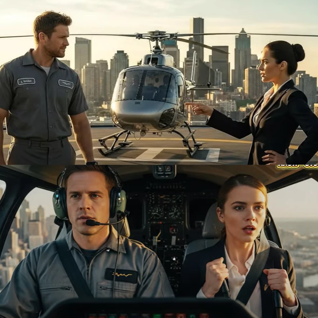 Maryanne shook her head. “We’ll have to drive.” Khloe clenched her jaw. “We’ll never make it in time.” Jordan looked pale. “Maybe we can reschedule?” Khloe shot him a look that could cut steel. “Skitec doesn’t reschedule. If we’re not there, the deal dies.” The rooftop fell silent except for the hum of the city below. That’s when Liam stepped out of the stairwell, bucket and mop in hand. He’d overheard the commotion while cleaning the executive bathroom. He walked toward them, calm and quiet. “I can fly it.” Maryanne laughed—a loud, condescending sound meant to humiliate. Jordan joined in nervously. “Seriously?” Maryanne scoffed. “What, you think this is a video game?” Liam didn’t react. He just stood, waiting. Khloe studied his face—no fear, no doubt, just calm. Desperate, she made a reckless decision. She smiled coldly. “Fly this helicopter and I’ll marry you.” Maryanne’s jaw dropped. Jordan looked like he’d swallowed his phone. Liam set down his mop and walked toward the helicopter.