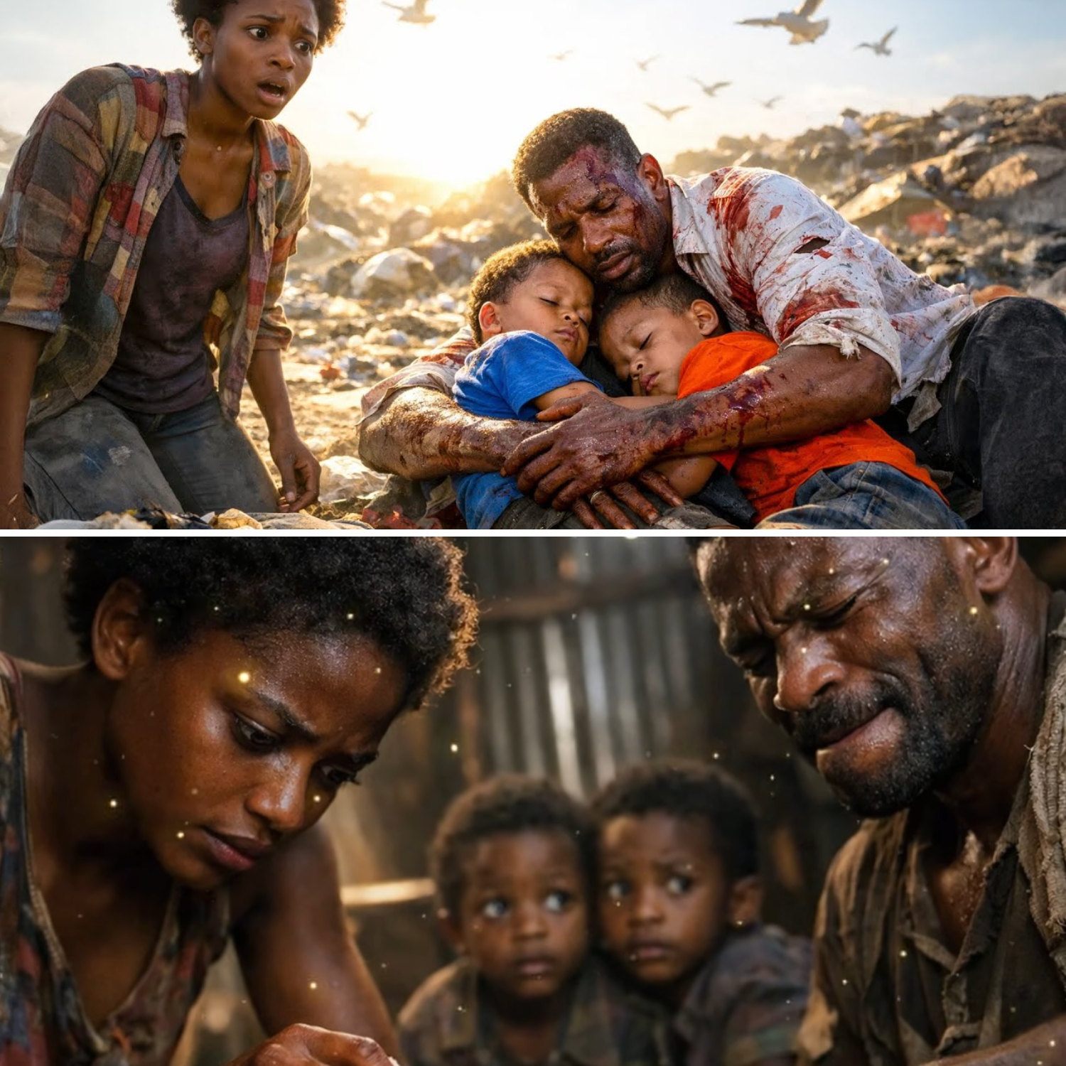 In the dim light of dawn, a girl named Victoria Narco found herself frozen in the midst of a trash-strewn field, the air thick with the stench of decay. It was a world she knew all too well, yet today was different. Blood stained the shirt of a man lying on the ground, his breath shallow, his arms wrapped protectively around two small boys—his twin sons. The boys’ pale faces and limp bodies spoke volumes of their distress. One whimpered softly, then fell silent.