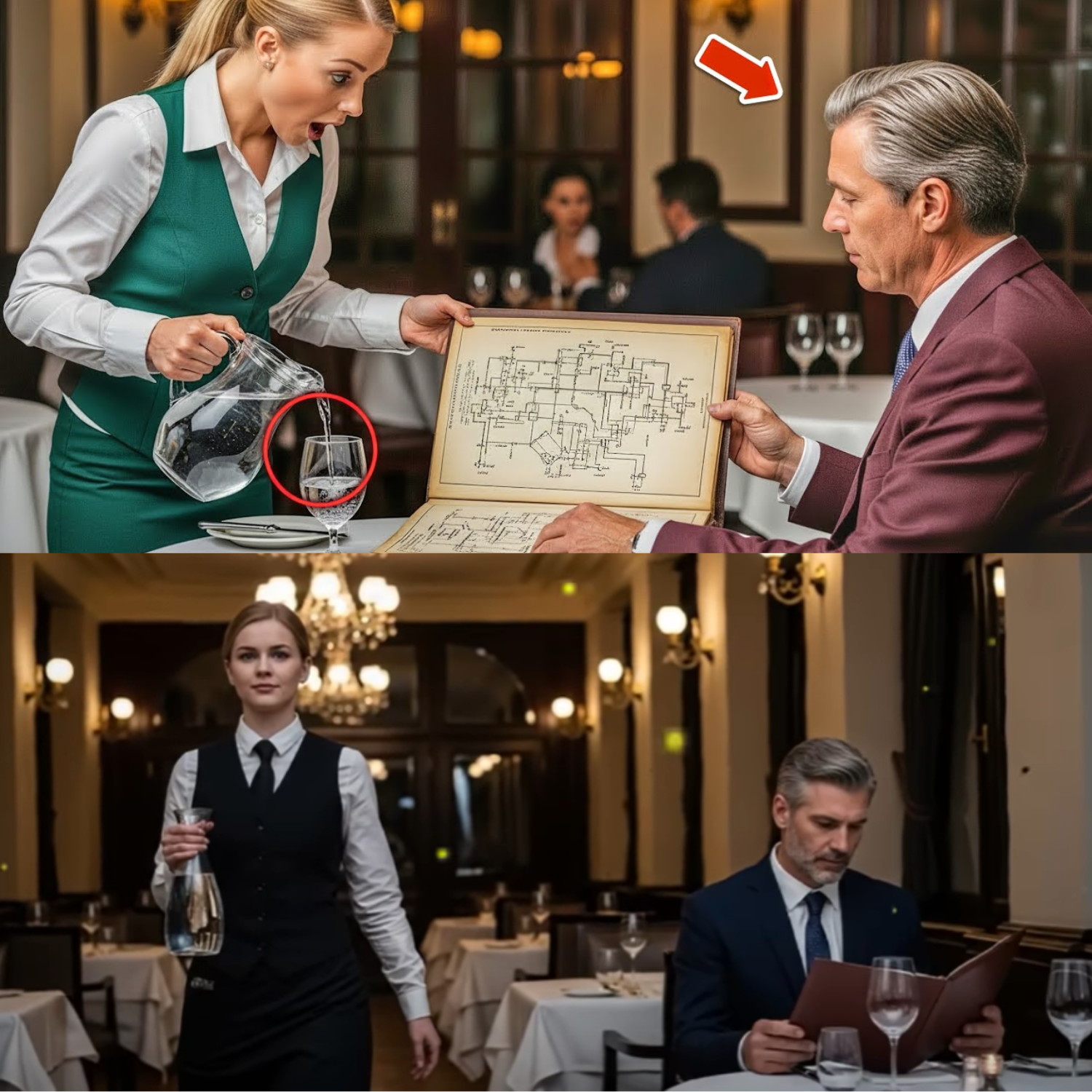 As Emily approached with a jug of water, her eyes caught the leather-bound folder resting on his table. It wasn’t a menu but something else entirely—pages filled with diagrams, blueprints, and signatures. Her breath hitched; her gaze froze. Then, as if time itself slowed, she saw it: a signature written in strokes so familiar, slanted just as she had seen on old birthday cards, school forms, and treasured letters hidden away in a box at home. It was her father’s handwriting.