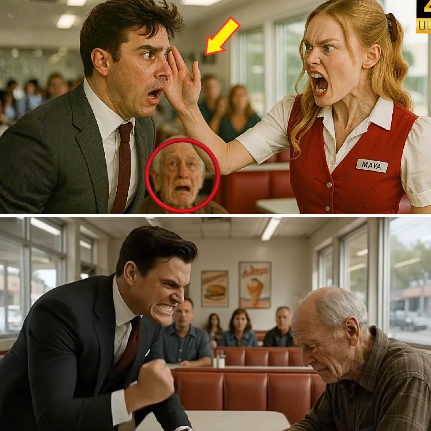 The rich man’s voice slashed through the diner like a blade, cold and entitled. “Get him out of here. I don’t want to watch this disgusting old man eat.” The elderly customer’s hands trembled, his fork clattering to the faded linoleum, tears streaking his weathered cheeks as humiliation swallowed him whole.