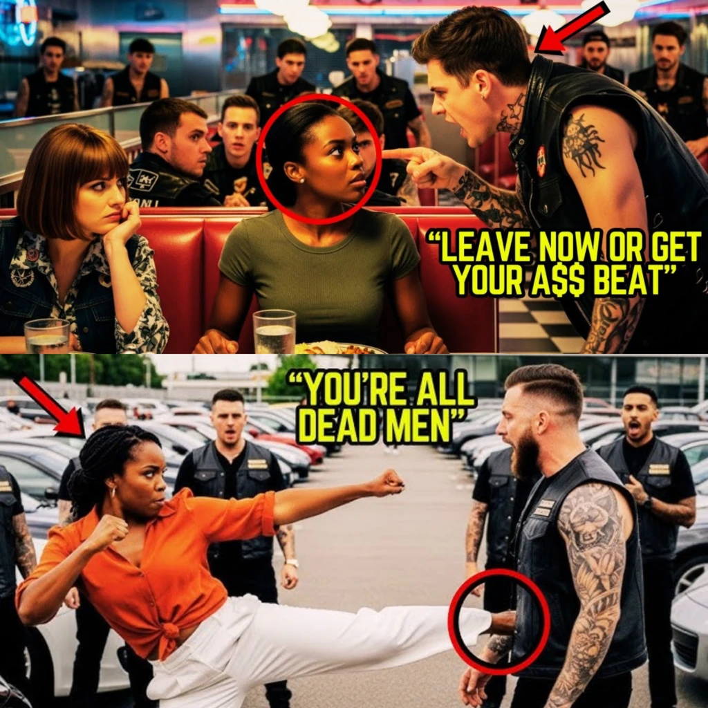 There’s a certain breed of hate that festers in the shadows of American diners, the kind that boils up when bigots think the world belongs to them. On a humid Thursday night, a small-town eatery became a war zone, not because of the food, but because a pack of leather-clad bikers decided they owned the air, the booths, and the right to decide who eats. What they didn’t know: the black woman they tried to humiliate was about to teach them a lesson in respect, pain, and the true meaning of “service.”