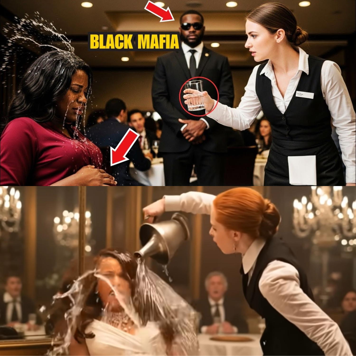 “White Waitress DRENCHES Pregnant Black Mafia Boss’s Wife with Water — What She Did Next DESTROYED Her Life!”