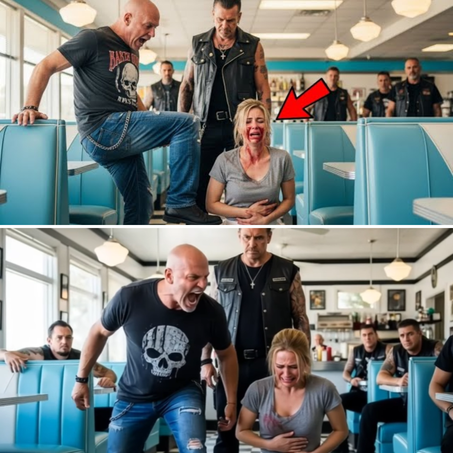 Old Mr. Grady tried to intervene, but a biker shoved him back, nearly toppling the old man. Grady’s eyes met Anna’s—helplessness, apology, and a flicker of fear. The brute raised his boot, ready to strike. Anna squeezed her eyes shut, bracing for pain. But then, through the ringing in her ears, she heard something else—a chair scraping, a breath, a voice.