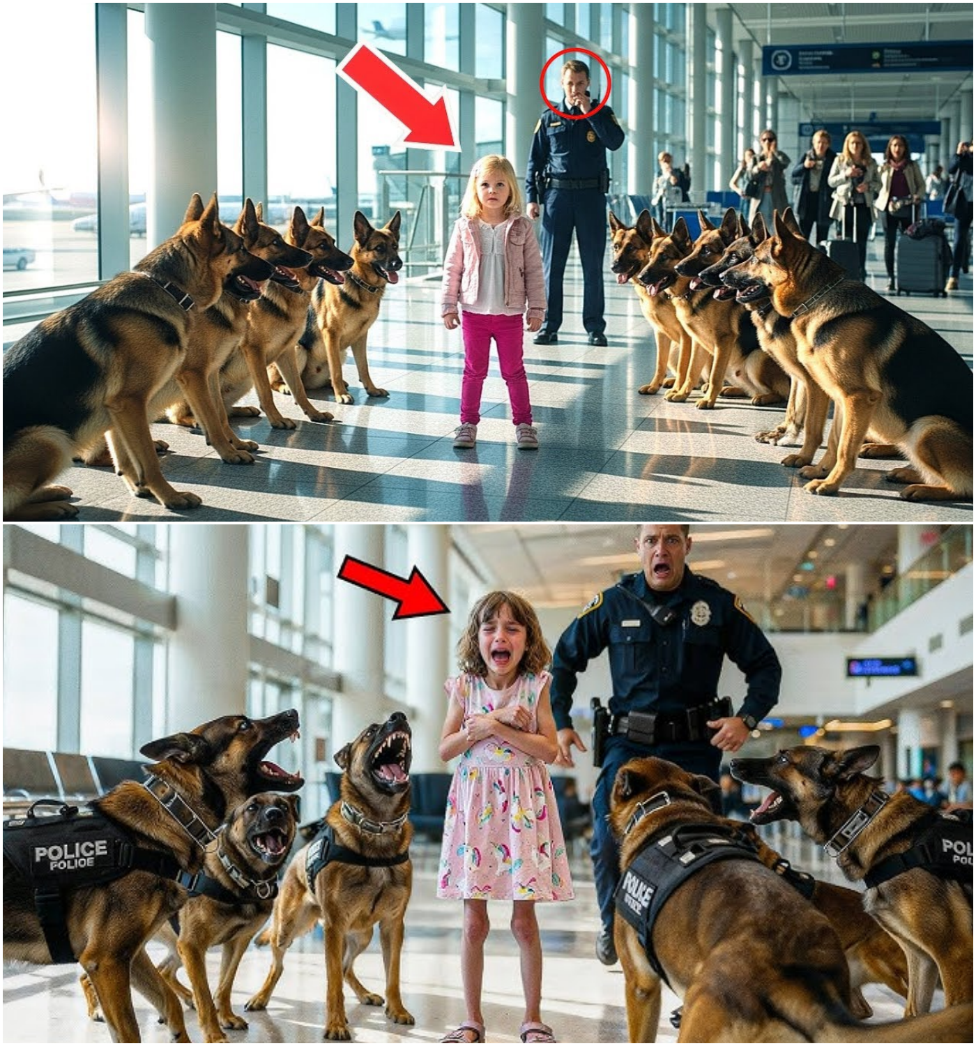 At 9:14 a.m., passengers near Gate 12 froze as 14 police German Shepherds suddenly broke formation and encircled a tiny four-year-old girl, identified later as Lily Parker. Witnesses described the moment as “surreal,” “terrifying,” and “unlike anything we’ve ever seen.”
