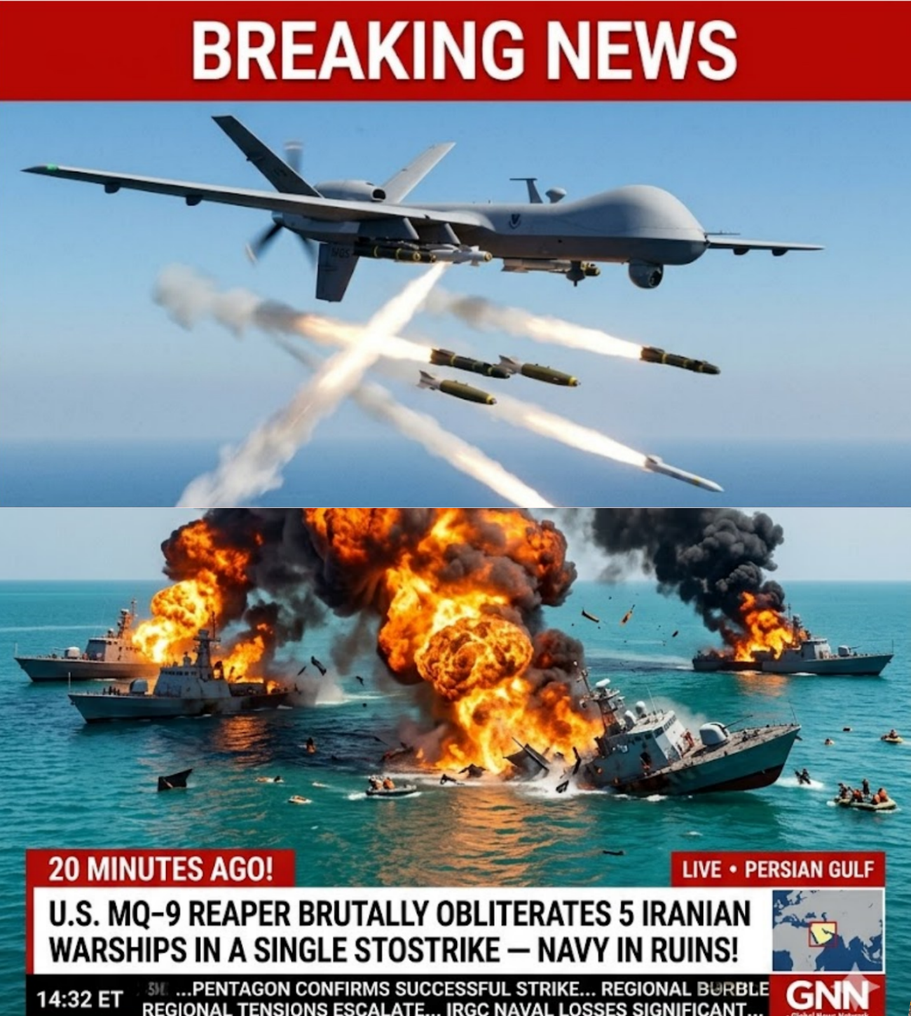 20 MINUTES AGO! U.S. MQ‑9 REAPER BRUTALLY OBLITERATES 5 IRANIAN WARSHIPS IN A SINGLE STRIKE — NAVY IN RUINS!