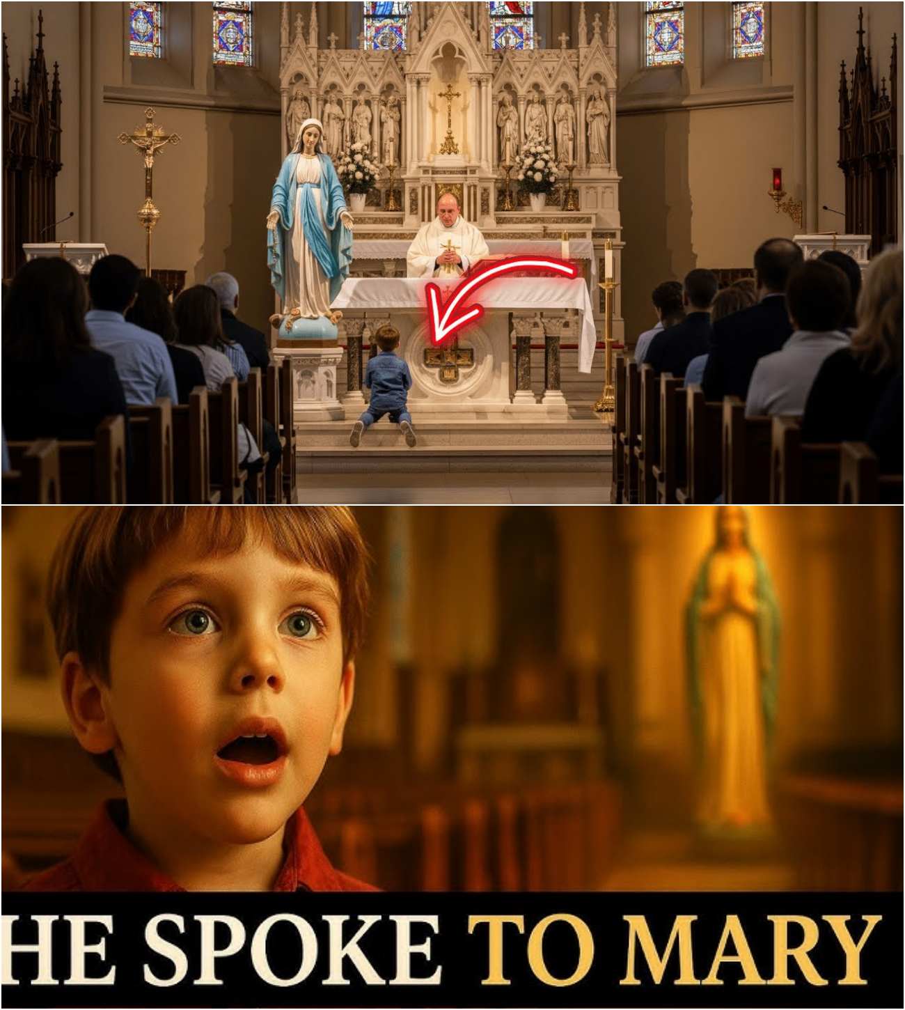 “Mary,” he said, his voice echoing through the church. The sound was clear, firm, and filled with an innocence that resonated deeply with everyone present. As he continued, “Hail Mary, full of grace, the Lord is with thee,” the congregation was left in awe.