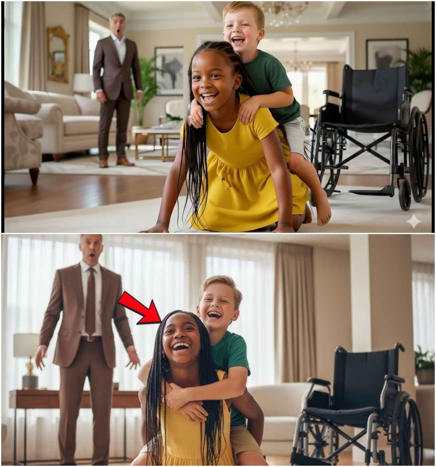 Stepping inside, the mansion was eerily quiet. Too quiet. Marcus loosened his tie, his heart racing with anticipation. Something was amiss. He could feel it in his bones. Then, he heard it—a sound that shattered the silence: laughter. Not the hollow, forced giggles Tommy sometimes offered during his lessons or the polite chuckles he gave to his doctors. This laughter was genuine, bubbling up from deep within. It was the kind of joy Tommy hadn’t expressed since the tragic accident that took his mother and left him confined to a wheelchair.