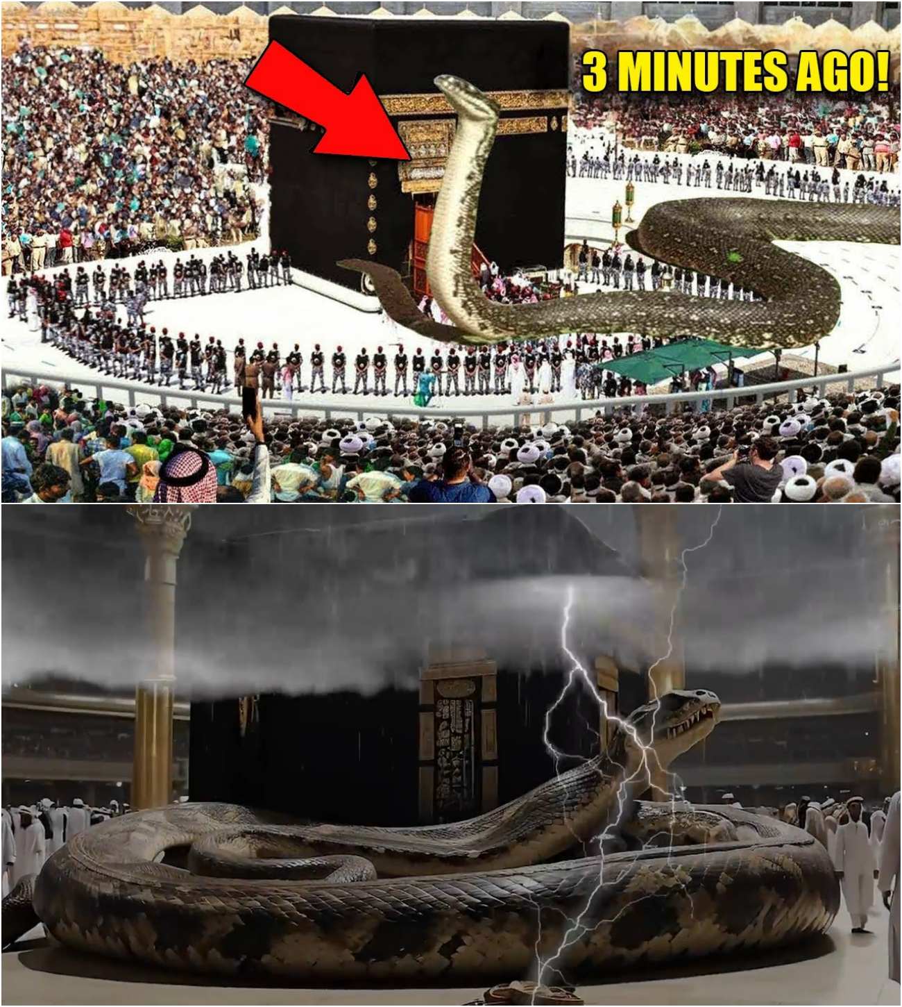 The incident occurred during the Hajj, a time when thousands of faithful gather at the Kaaba in Mecca, Saudi Arabia, to perform their religious duties. As pilgrims engaged in their rituals, a massive snake suddenly emerged near the sacred site, causing panic and confusion among the crowd. Witnesses described the snake as being unusually large, with a presence that seemed both awe-inspiring and terrifying.