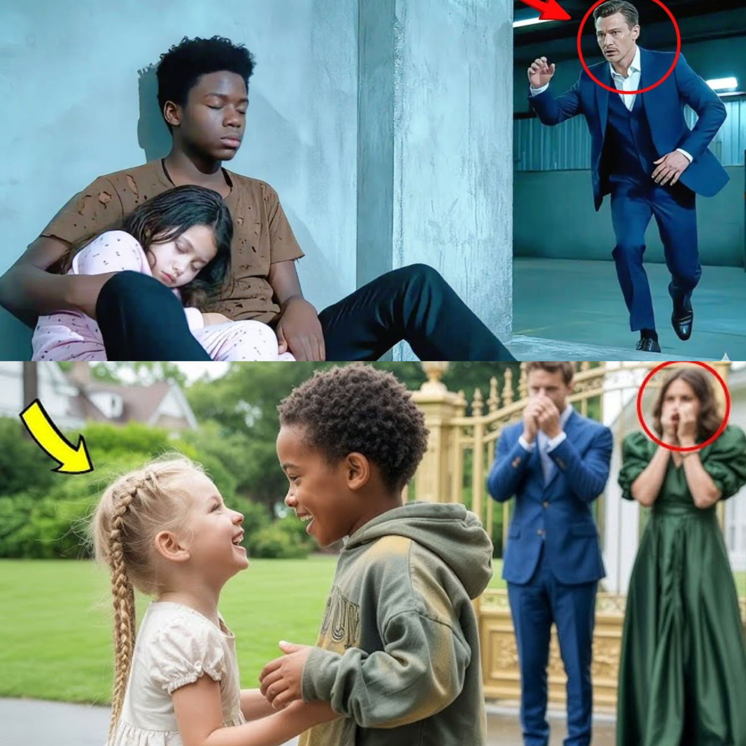 The biting cold of December wrapped around the city like a suffocating blanket, and the sun had long since surrendered to the darkness. Richard Hartwell’s heart raced as he stumbled upon a sight that would forever change his life. His seven-year-old daughter, Lily, curled up on the marble steps of their opulent mansion, wrapped in a torn, dirty blanket, her small body trembling from the cold. But she wasn’t alone. A boy, no older than twelve, sat beside her, his thin frame shivering violently, arms wrapped protectively around her. Both had lips tinged blue, both were barely moving, and the scene struck Richard like a thunderbolt.