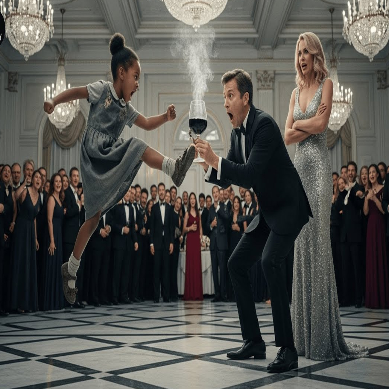 The crowd murmured, a mix of outrage and curiosity. Richard’s fiancée, Vanessa, clutched his arm, her voice dripping with disdain. “Richard, don’t listen to this nonsense. Security! Remove her at once!” But before anyone could act, Anna darted forward, her small foot striking the stem of Richard’s glass. Time seemed to freeze as the crystal shattered, red wine spilling across the pristine marble floor like blood.