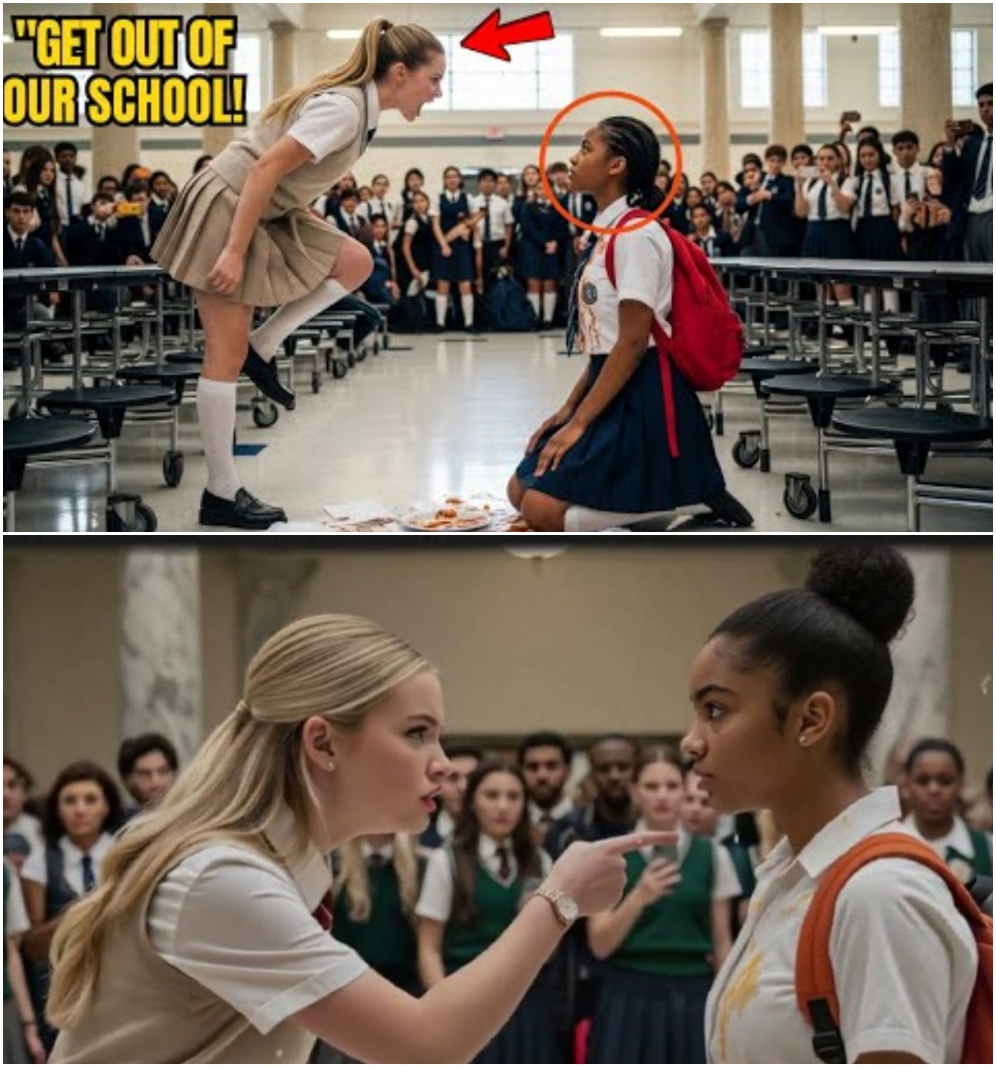 The room fell silent. Trays clattered to the floor. Fifty students in pressed uniforms formed a perfect circle around the scene—wealth and privilege creating a wall Jasmine could not escape. She stood in the center, milk and cafeteria spaghetti sliding down her dark skin, her scattered notes crushed under Whitney’s designer shoes. Phones rose, ready to capture the humiliation.
