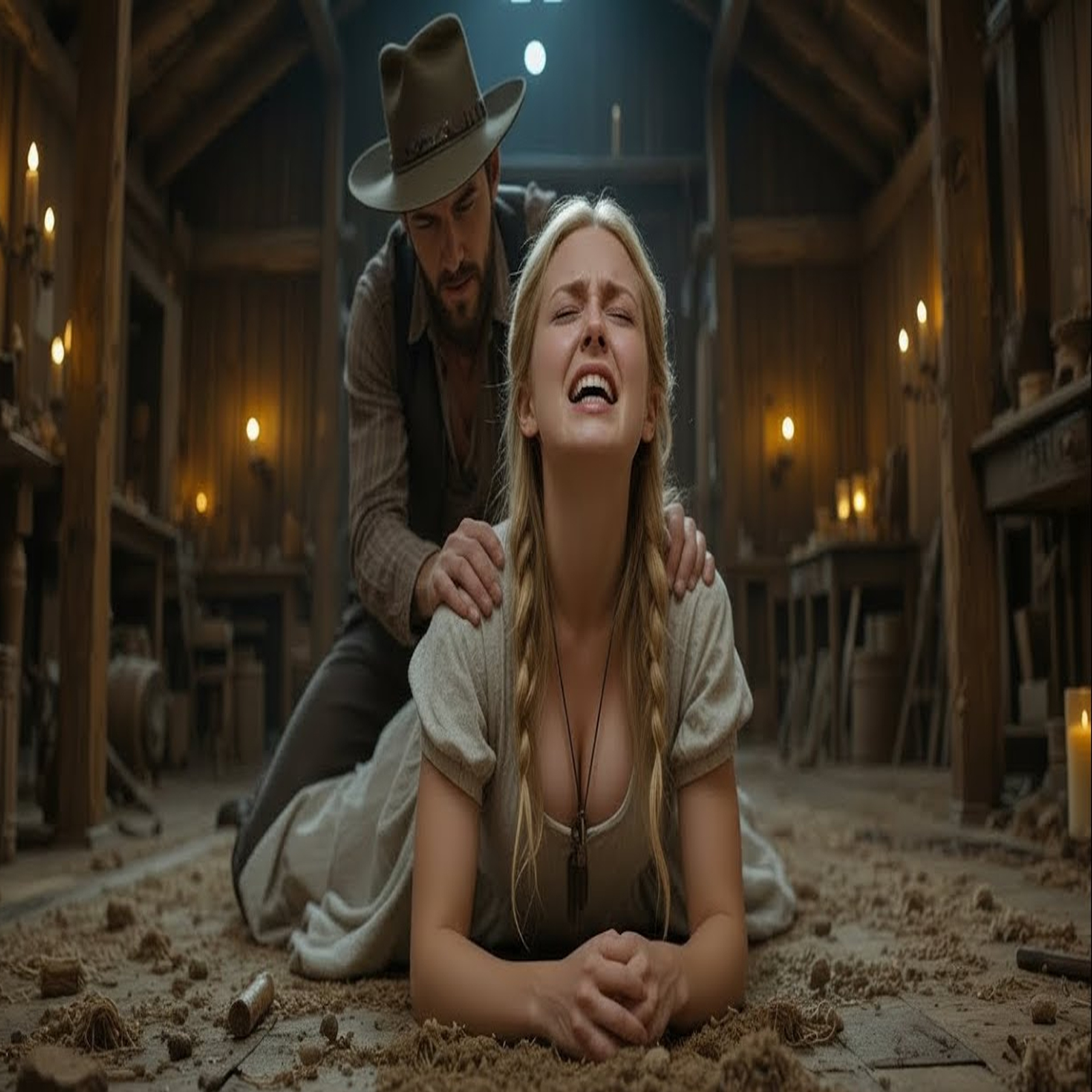 And so, every night, when the desert wind howled like a wounded wolf against the beams of the shack, he crossed the corral, shawl clutched tight to his chest, heart pounding like a war drum.