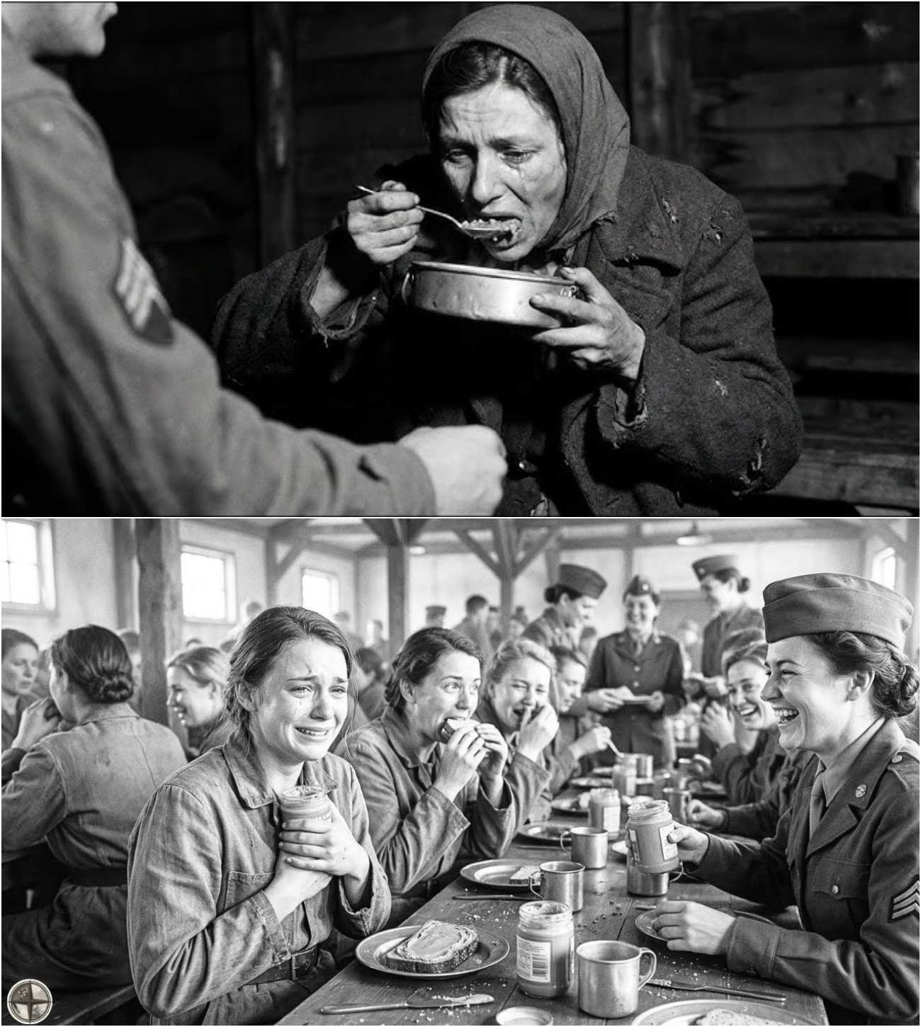 The German women exchanged looks. Some laughed nervously. They assumed this was some kind of cruel joke—a way to mock their helplessness. But what they saw next shattered their assumptions. The American guards, soldiers, and kitchen staff were eating the same thing. They weren’t offered different food; they were eating the exact same meals. No special treatment, no extra portions for the guards. Everyone ate the same food, including the strange brown paste.
