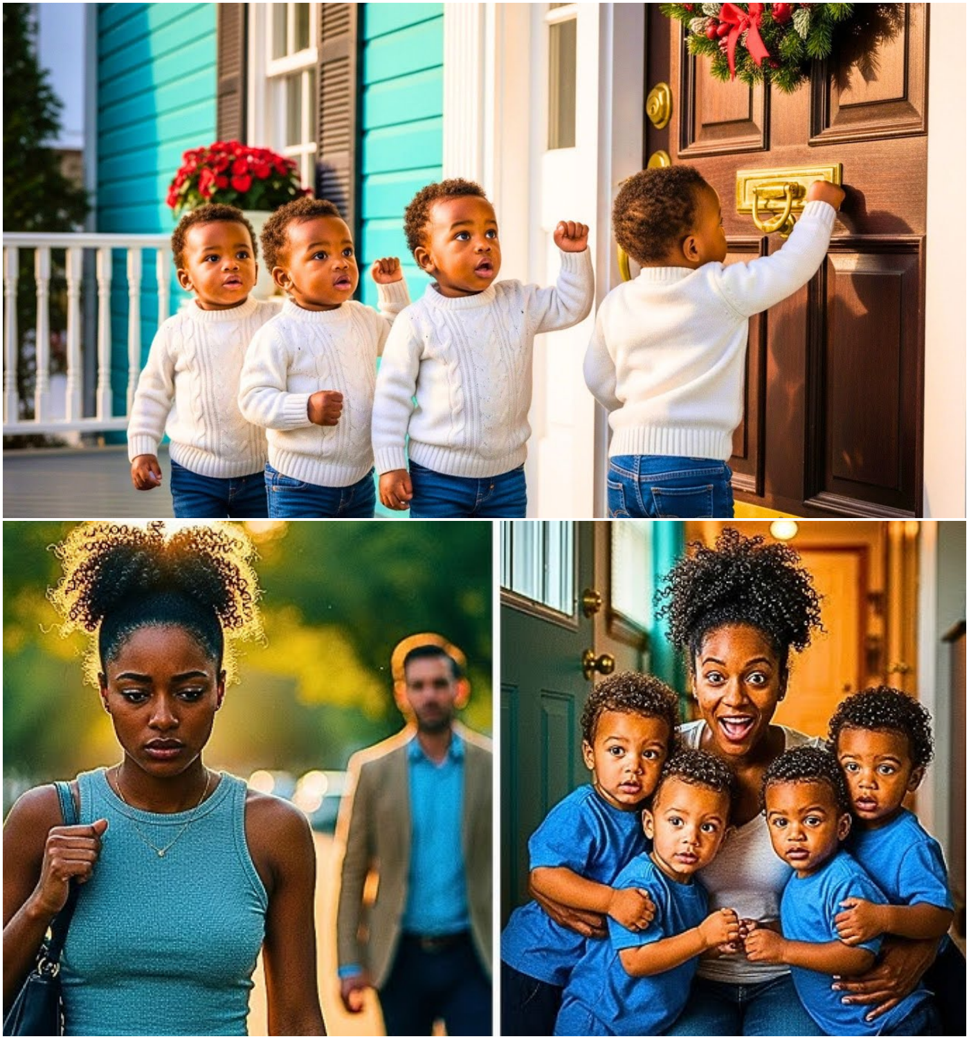 On a cold Christmas Eve, the doorbell rang twice, shattering the silence of the opulent mansion. James Wilson, a 40-year-old millionaire, opened the door, only to freeze in disbelief. Standing before him were four toddlers in matching white sweaters, their identical faces mirroring his own. Behind them stood Amara Johnson, the maid he had fired three years ago for being pregnant.