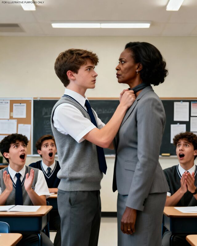 Instead of obeying, he stood up and approached her desk. His friends pulled out their phones, ready to record the confrontation. “What are you gonna do?” he sneered. “Call the principal?”