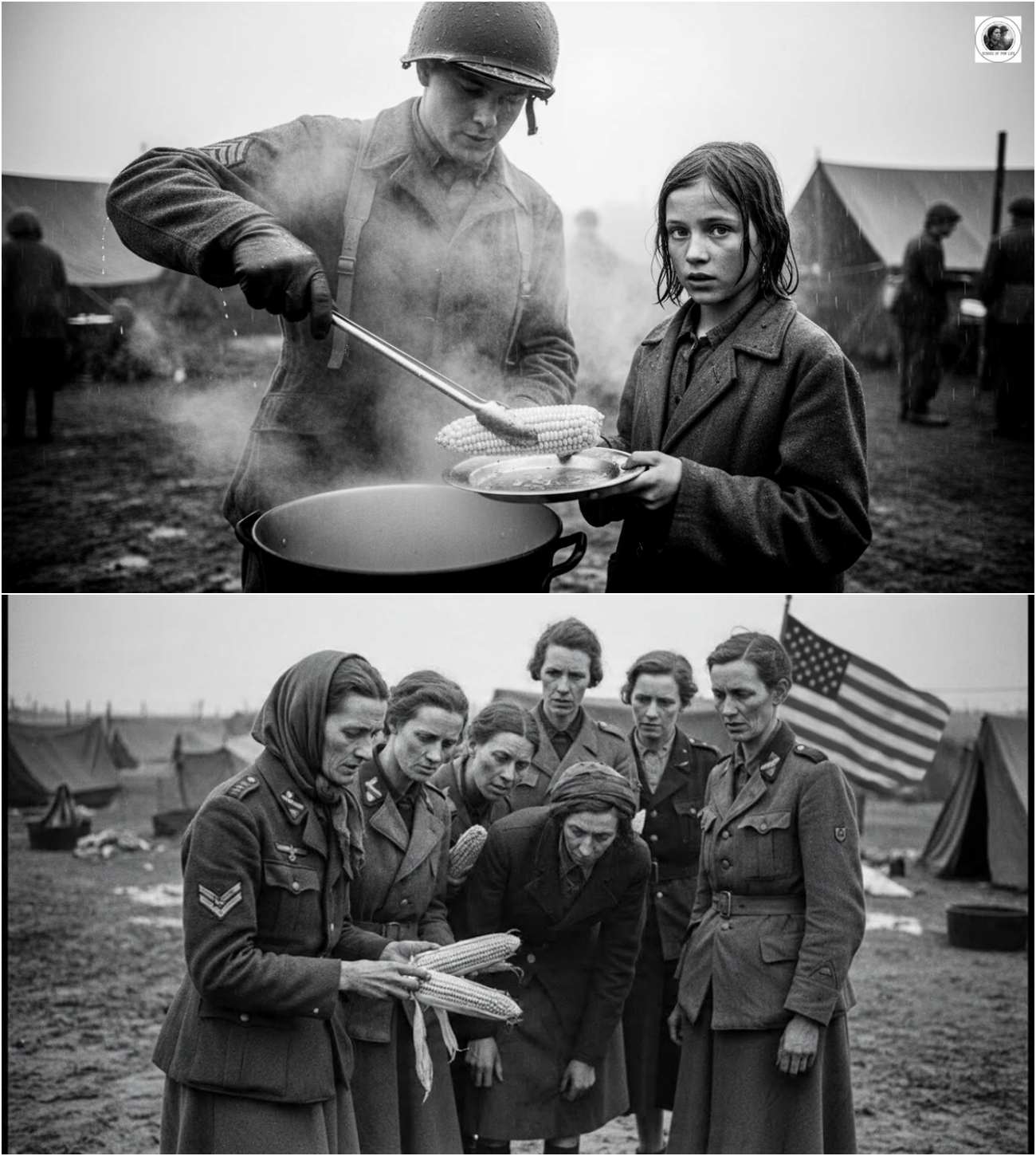 PFC Miller began to look for Annelise in the crowd. He saw the way she ensured Lenny ate first. One afternoon, he used his tongs to select a particularly large, perfect ear of corn just for her. Their eyes met for a fraction of a second. No words were exchanged, but in that glance, the “professional disinterest” vanished. They were no longer prisoner and guard; they were two young people surviving a catastrophe.