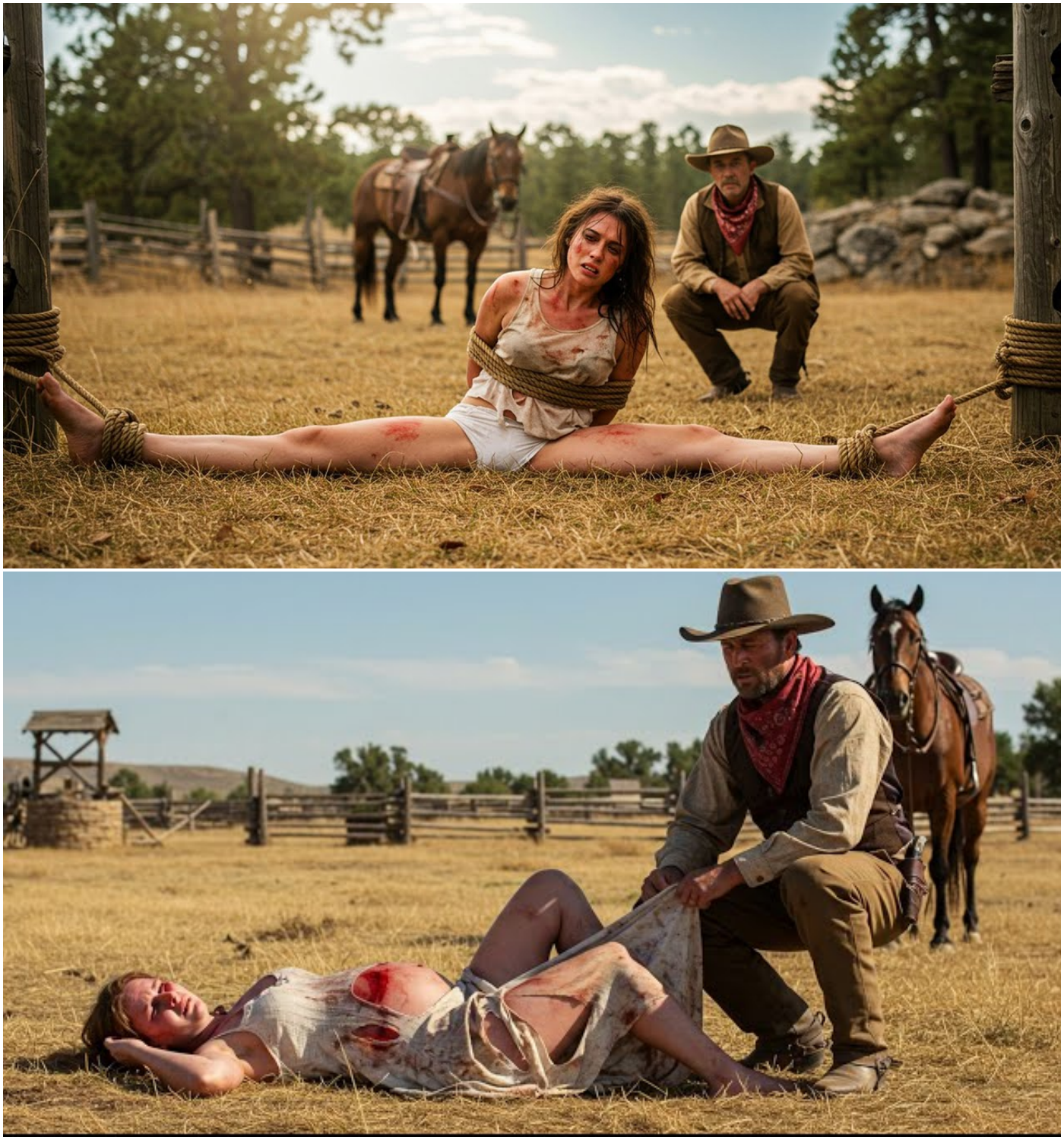 Mary’s wrists bore the marks of the ropes that bound her, cutting deep into her flesh, a constant reminder of her captivity. Each day, she endured the scorching sun, her body stretched against the old wooden fence, helpless and exposed. Every breath was a struggle, every heartbeat a reminder of the fear that gripped her heart. She was too young to comprehend why her life had spiraled into this nightmare, too young to fight back against a man whose bitterness and cruelty seemed to have no bounds.