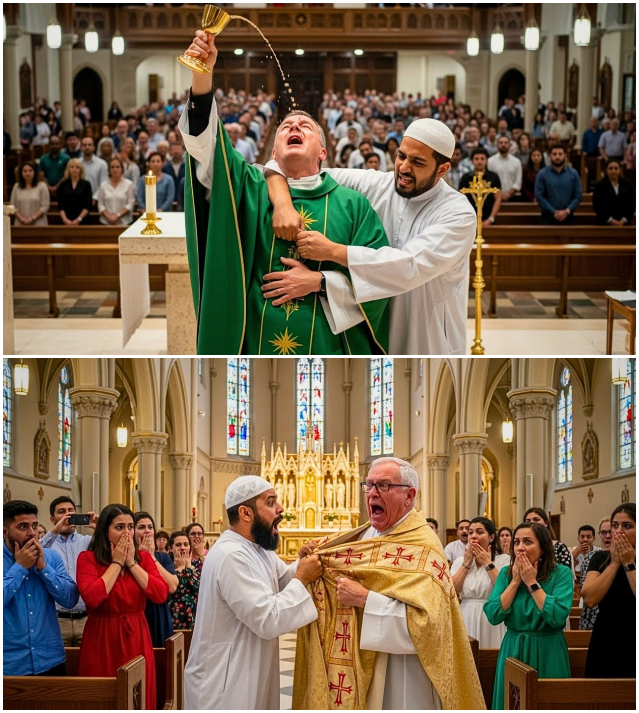 The congregation was paralyzed, caught between fear and disbelief. Father Miguel slowly lowered the host, his expression shifting from shock to profound sadness. He began to pray, not for his safety, but for Rashid, whose turmoil was now palpable.