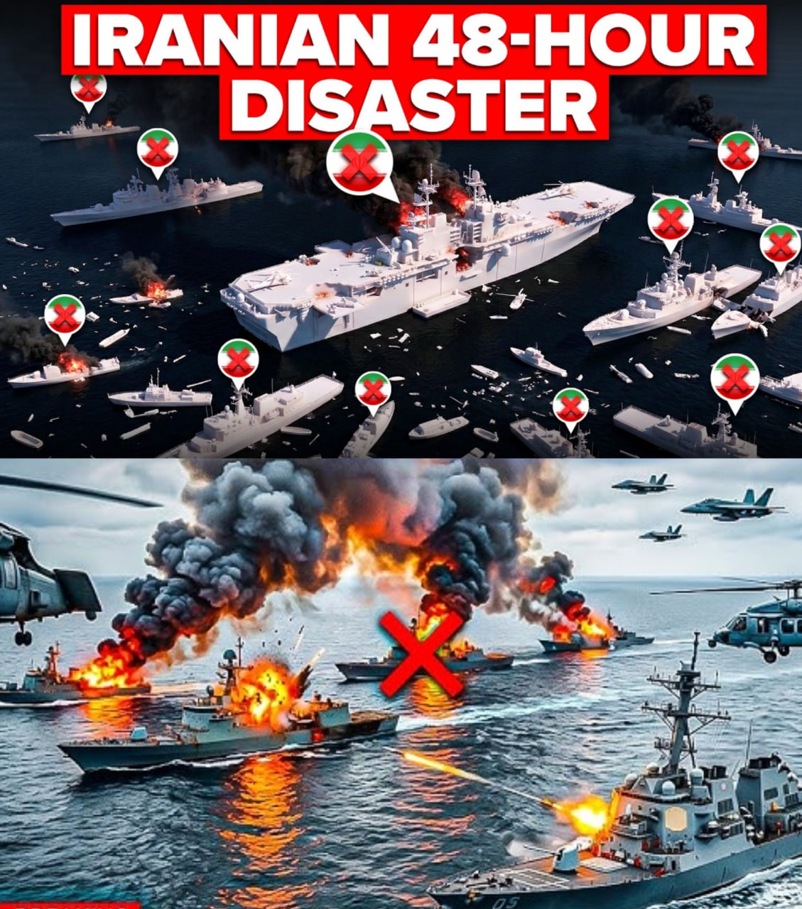The confrontation between Iran and the United States escalated dramatically after Iranian forces attempted to challenge American naval dominance in the waters surrounding the Persian Gulf and Gulf of Oman. Within just 48 hours, a massive wave of U.S. and allied strikes reportedly destroyed a large portion of Iran’s naval power, leaving warships sunk, bases damaged, and Tehran’s maritime strategy in disarray.