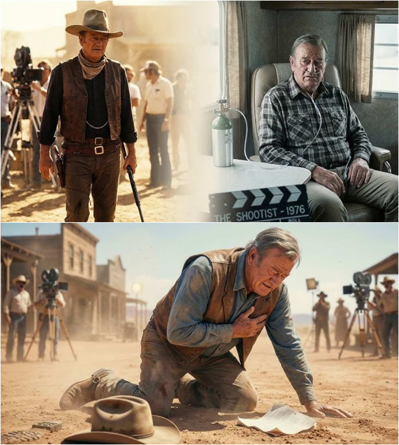 When the final take was called, the silence was palpable. Then, slowly, applause erupted from the crew, a testament to Wayne’s indomitable spirit. He walked off set, straight to his trailer, where Ron followed him. Inside, Wayne sat with an oxygen tank beside him, breathing heavily.