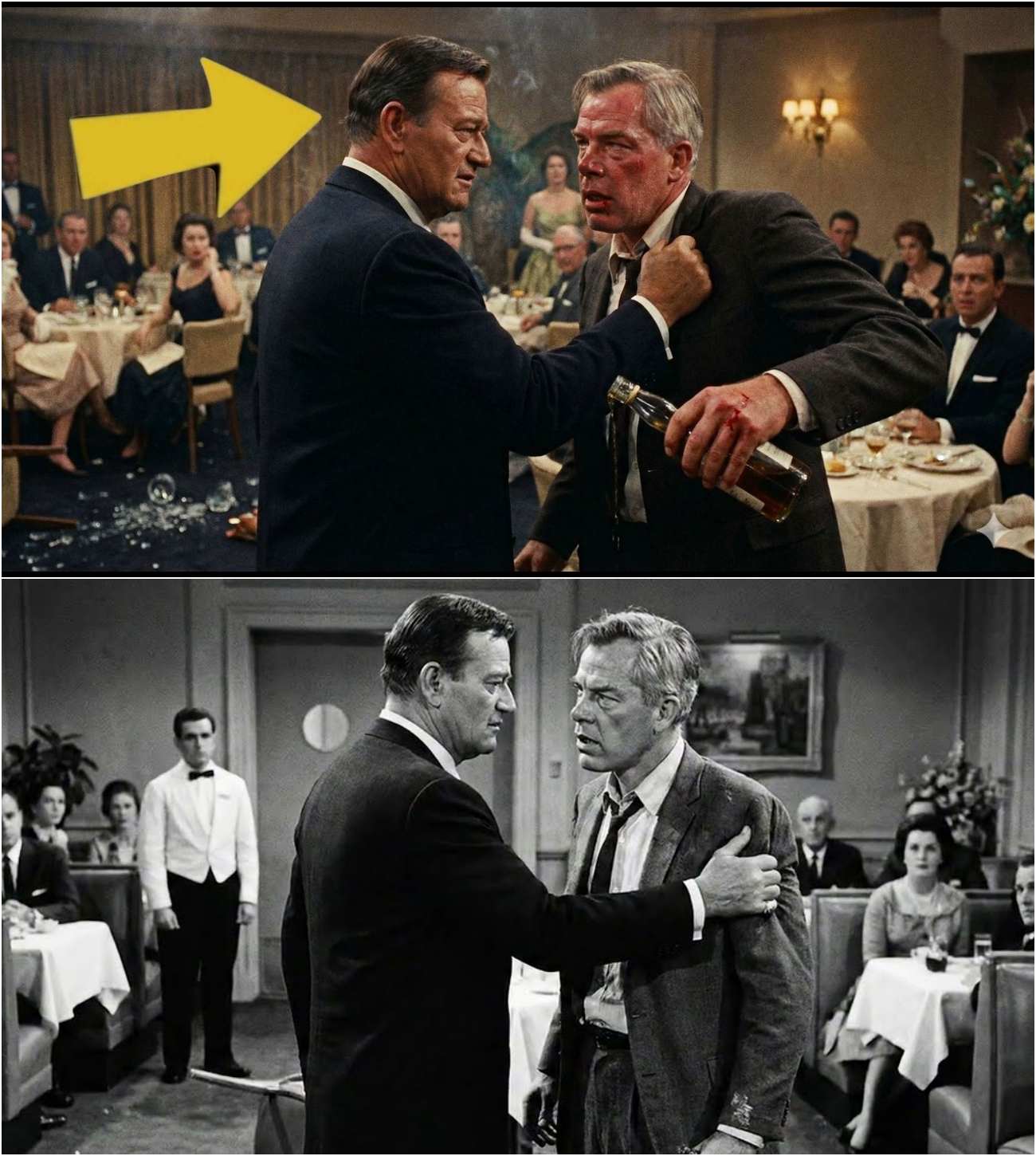 But then Wayne’s voice hardened, and he added, “But I’ve seen what it did to men like you. Real men. Heroes.” His voice carried the authority of every sergeant, every commander, every man who had ever fought for something greater than themselves. “And that hero, Lee… that hero wouldn’t be standing here, terrorizing waiters and breaking crystal like some common drunk.”