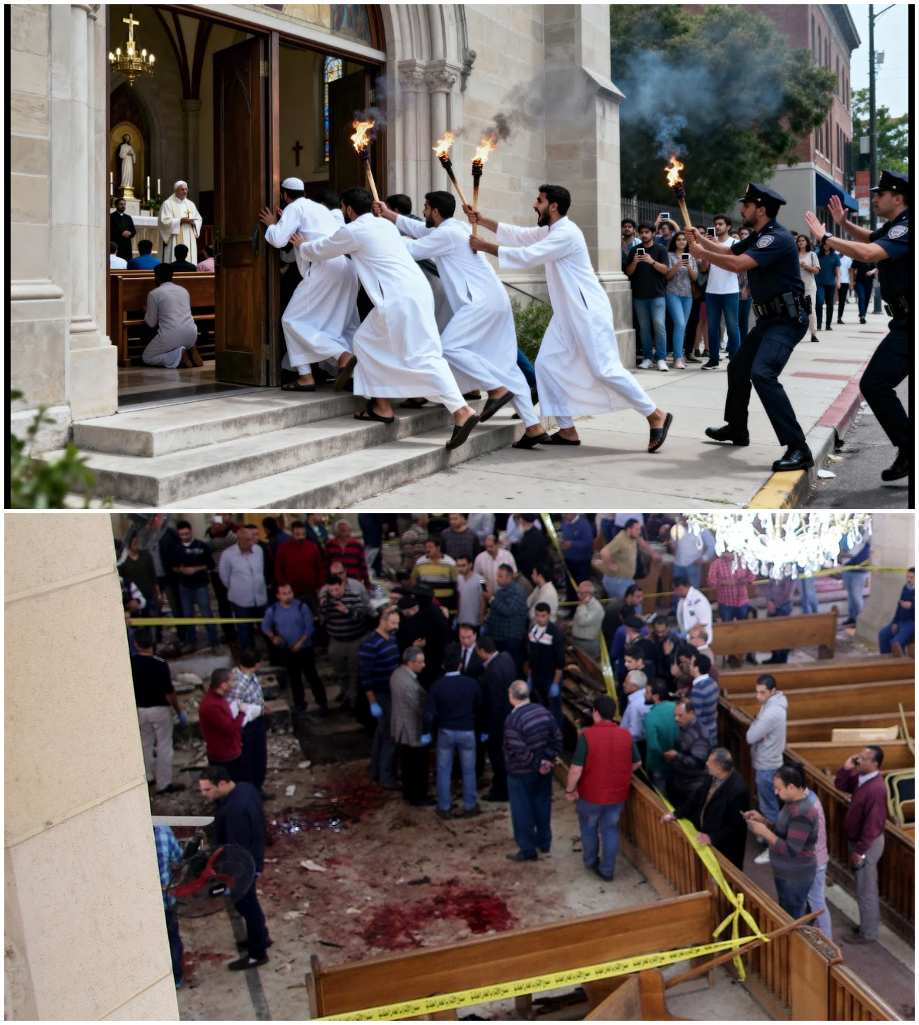 As the mass commenced, Tariq’s anger simmered beneath the surface. The priest, Father Michael, spoke of the Eucharist as the source of Christian life, igniting Tariq’s fury. When the moment for communion arrived, he signaled to his companions, and they sprang into action.