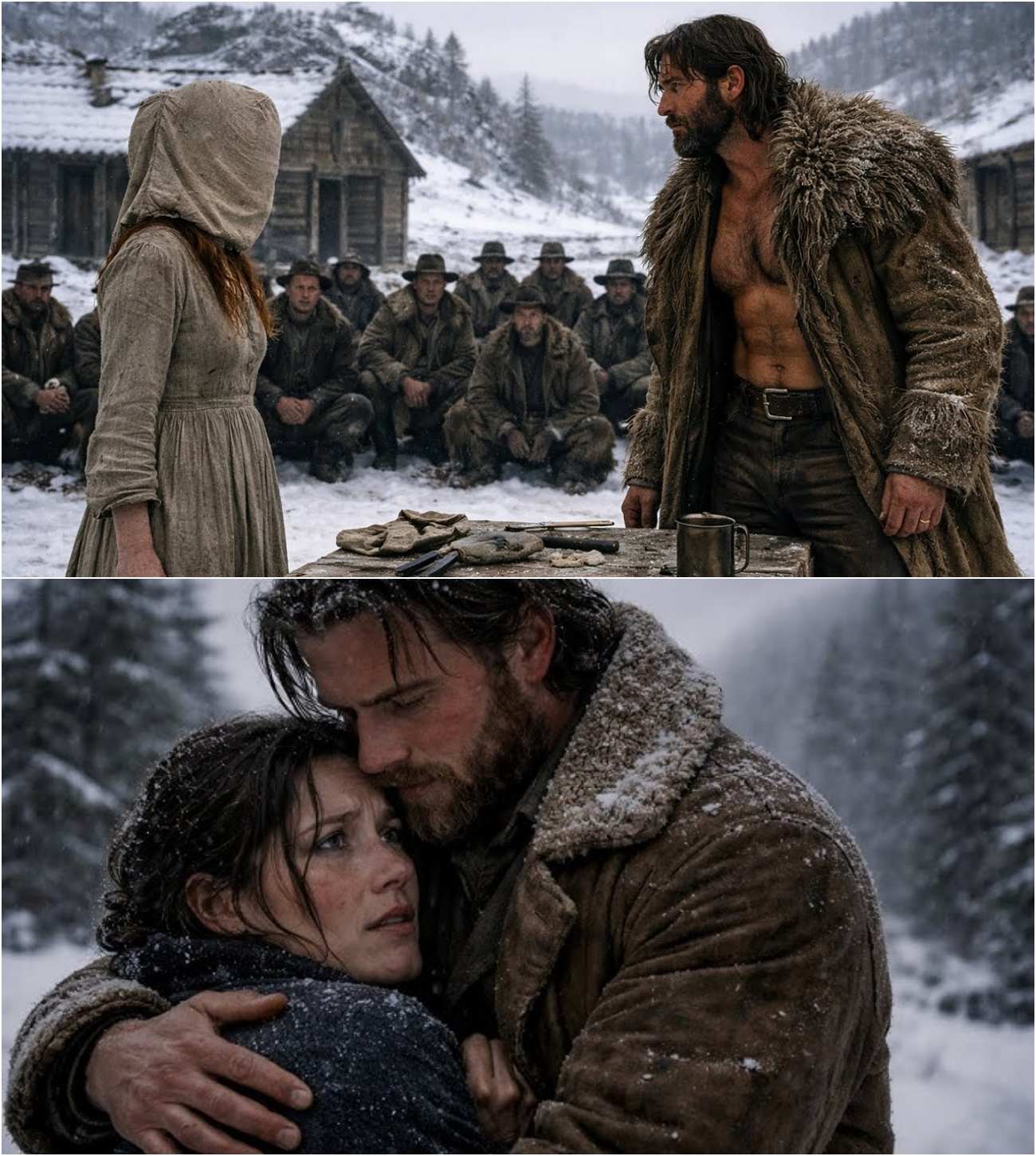 The journey back to his cabin was arduous. Snow began to fall heavily, and Silas wrapped a spare blanket around her shoulders, trying to shield her from the bitter cold. She remained silent, her fear palpable, as they trudged through the snow.