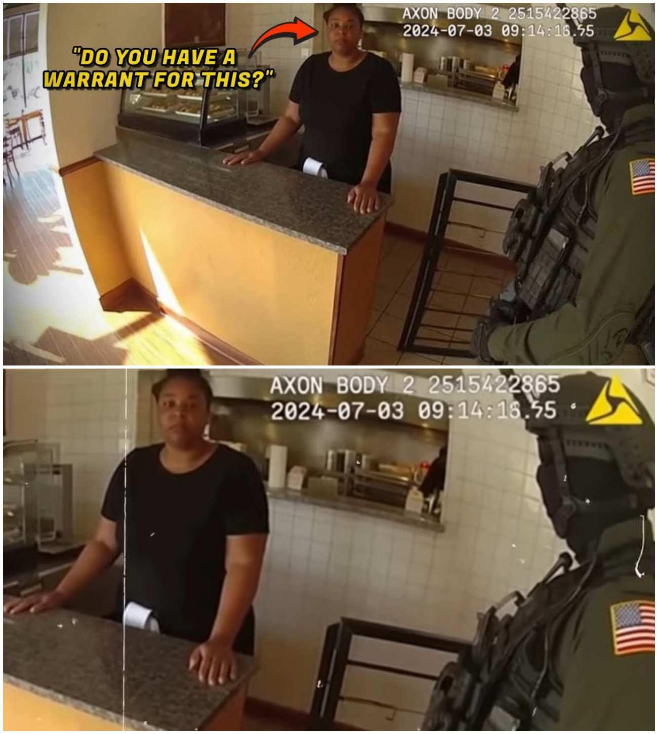 As the women stood in line, an officer named James Sullivan arrived, ready to conduct an inspection based on an anonymous complaint. He strode into Kesha’s Kitchen, expecting compliance as he had experienced in countless other businesses. However, Kesha was not intimidated. When Sullivan demanded entry without a warrant, she calmly asserted her rights, citing the Fourth Amendment.