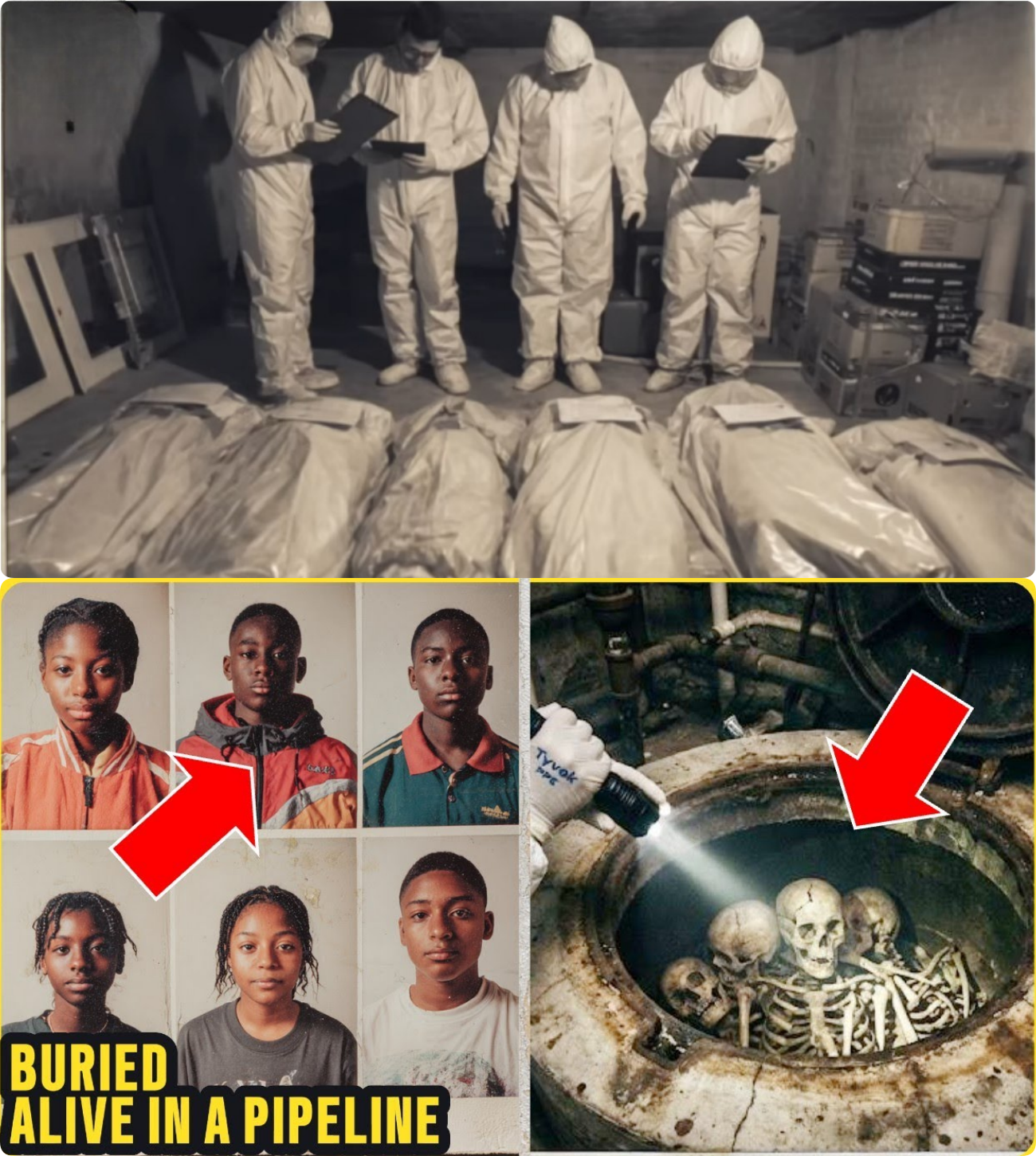 His flashlight beam landed on the unimaginable—bodies, small bodies, wrapped in plastic, stuffed into the drainage system. Six of them, tangled together, preserved with chemicals, hidden for years.