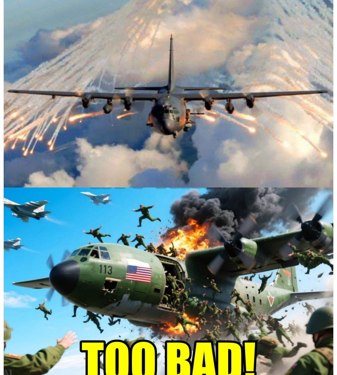 In an unprecedented military strike, three U.S. C-130 cargo planes, carrying 5,000 soldiers, were obliterated by Russia’s deadly Su-57 fighters, leaving the world stunned. How did these advanced Russian jets manage to wipe out such a massive transport operation so swiftly? As the wreckage of the planes burns, questions arise about the true scale of this assault. Was this just a simple attack, or is it part of a much larger, more terrifying strategy? What are the true consequences of this devastating blow, and how will the U.S. respond to this catastrophic loss?