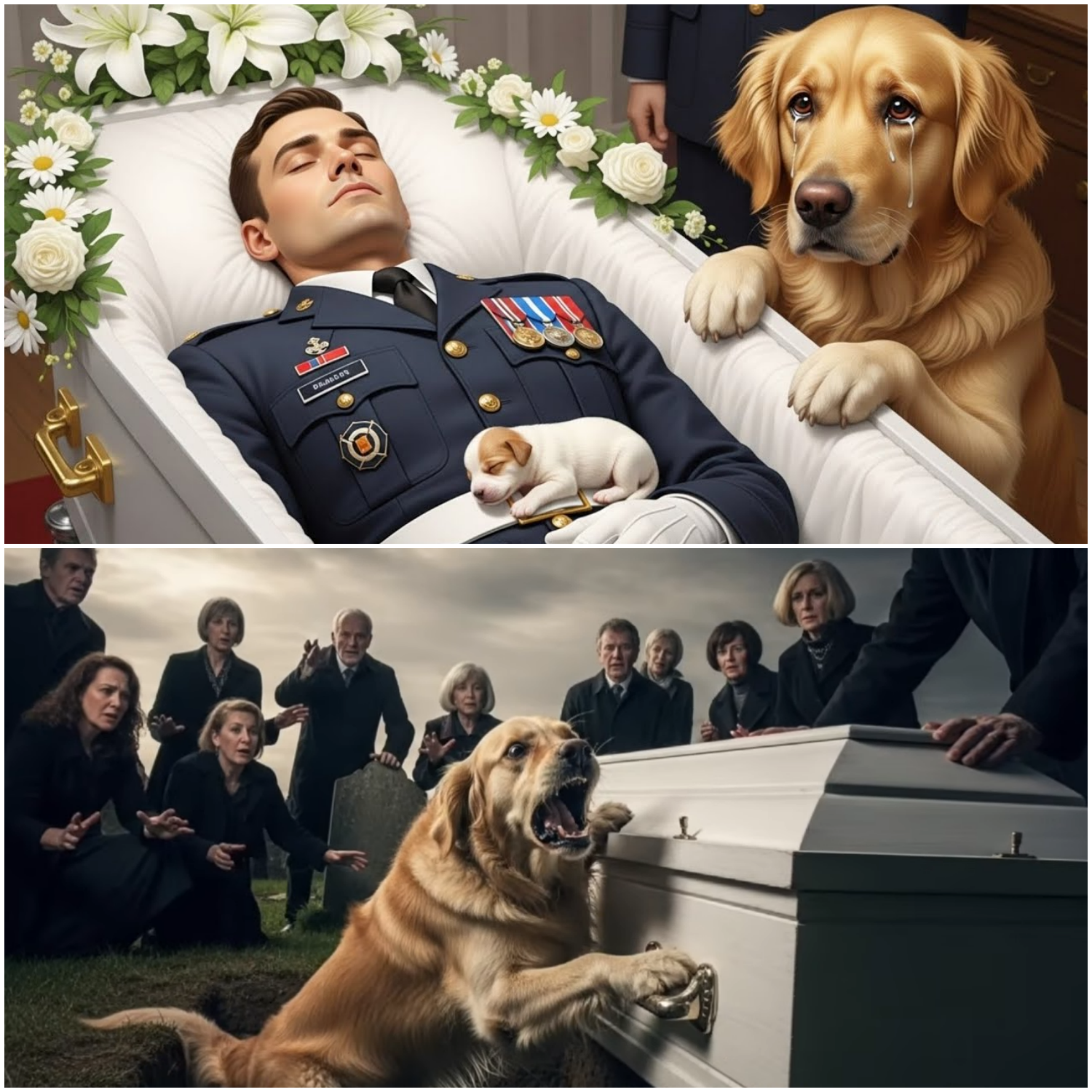 The air was thick with sorrow as friends and family gathered to pay their last respects. Brian, the golden retriever, lay by the coffin, his soulful eyes filled with an understanding that no one else possessed. As the mourners whispered their goodbyes, Brian barked and clawed at the wooden box, his cries echoing through the cemetery. “Let him go,” they urged, believing the dog was merely grieving. But Brian knew something they did not.