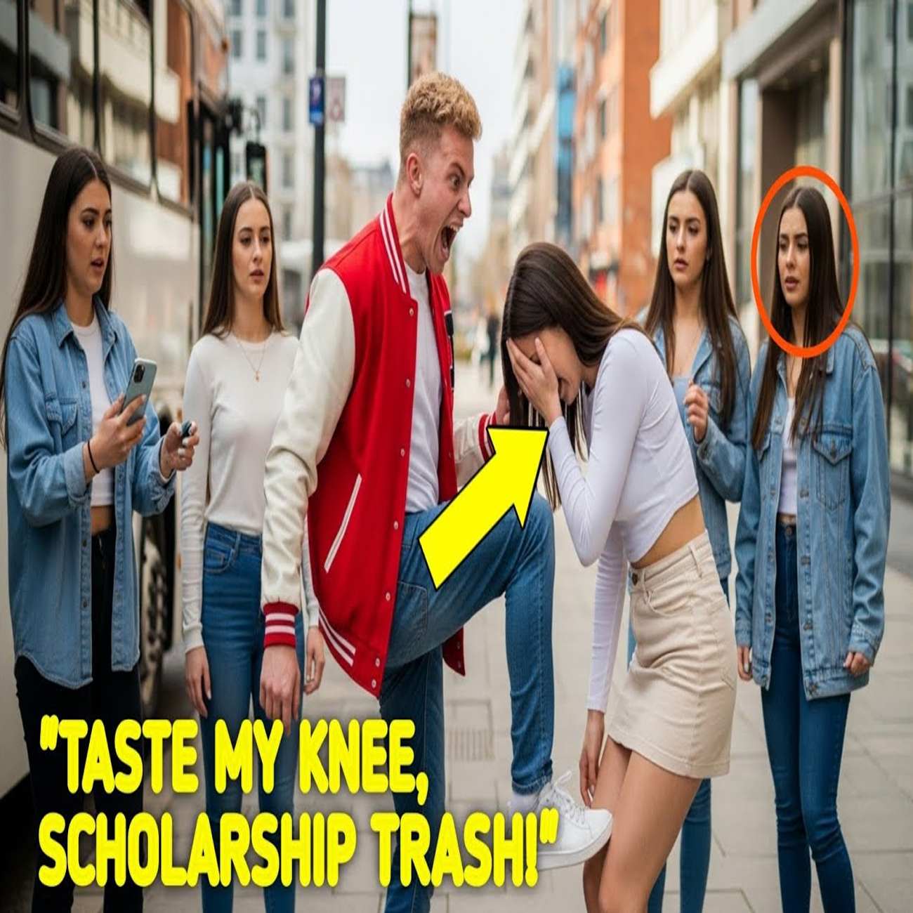 Lena kept walking, her quiet defiance stoking the flames of Troy’s anger. Before she could pass, he stepped forward and kneed her in the face. Gasps filled the hallway as her books scattered and blood dripped down her chin. For a brief moment, she remained motionless, and everyone expected her to cry or flee. But Lena did neither.