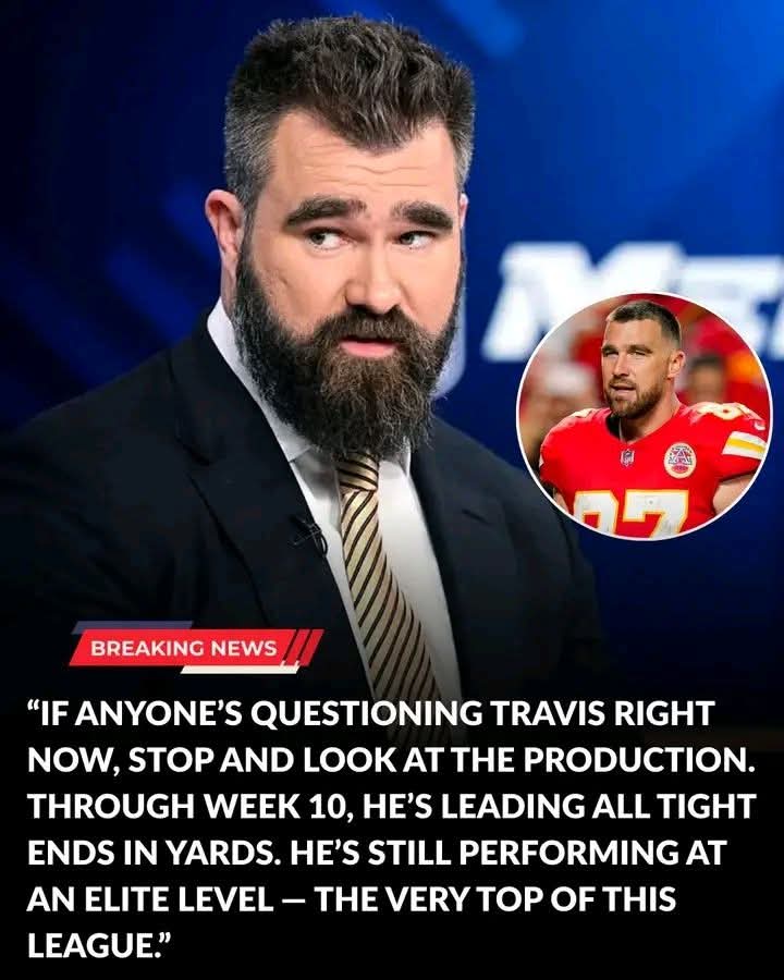 Everything blew up like fireworks at noon. Travis’ drama — from his relationship to his schedule to the way he raised an eyebrow during a game — was being examined like an open-heart surgery livestream. Day after day. Hour after hour. And Travis? He stayed chill, smiled, did his job, ignored the noise. But Jason? Jason watched. Stayed quiet. Watched more. Stayed even quieter… until boom — this morning, he dropped a line that froze the entire internet like someone hit 0.25x speed.