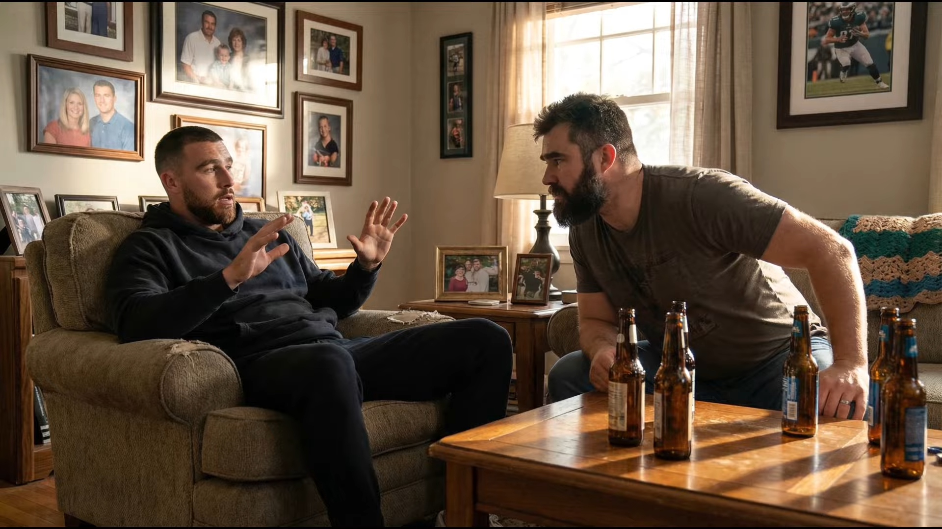 Travis Kelce sat across from his older brother, Jason, in the comfortable living room of Jason’s suburban Philadelphia home.