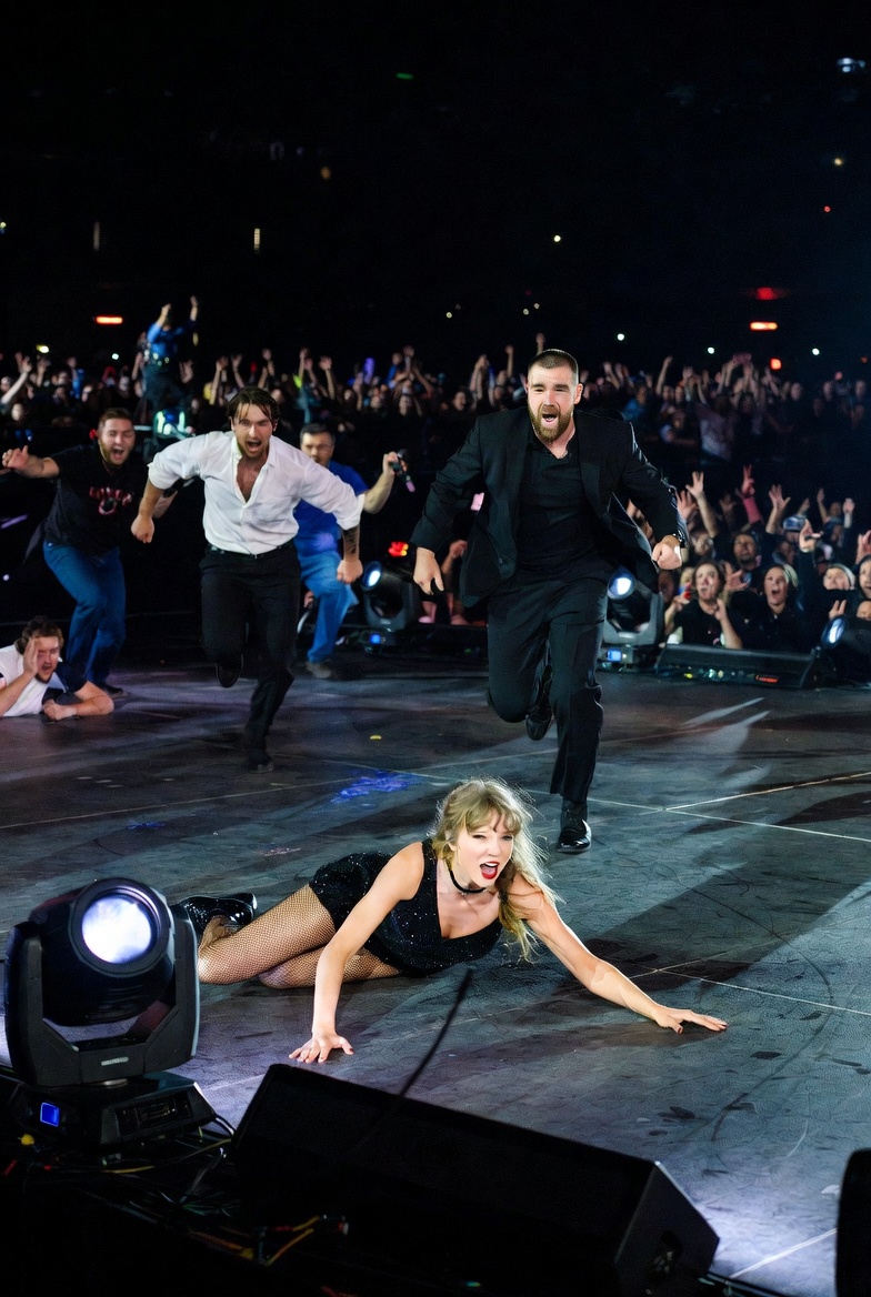 Kelce’s reaction was purely instinctual. Ignoring all protocol, he bolted onto the stage in a desperate sprint toward Swift. His presence, an immediate and clear sign of the severity of the situation, amplified the growing chaos and screaming in the arena.