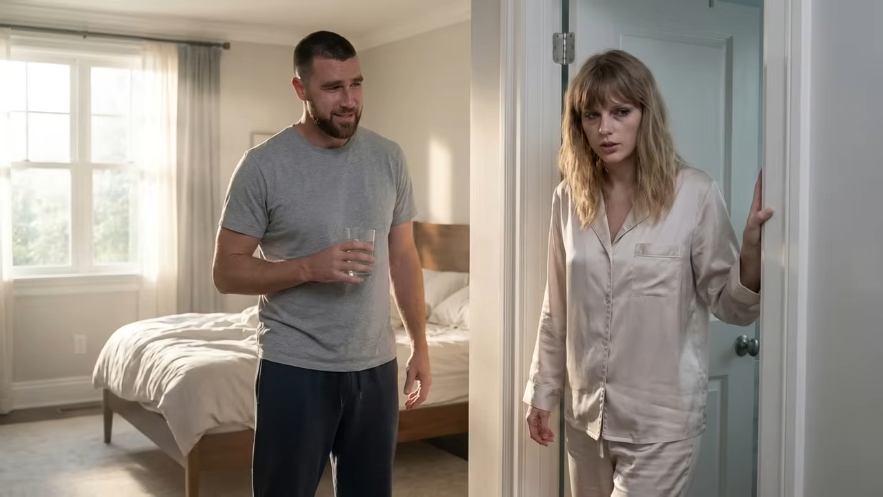 Travis Kelce was in his kitchen making coffee when he heard the unmistakable sound of Taylor Swift being sick in the upstairs bathroom.