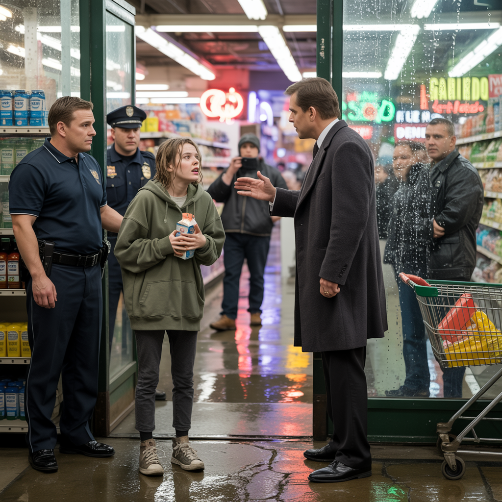 A homeless girl was caught by the store manager and the police were called after she stole a box of milk for her starving younger siblings — but just then, a millionaire who saw everything stepped in…